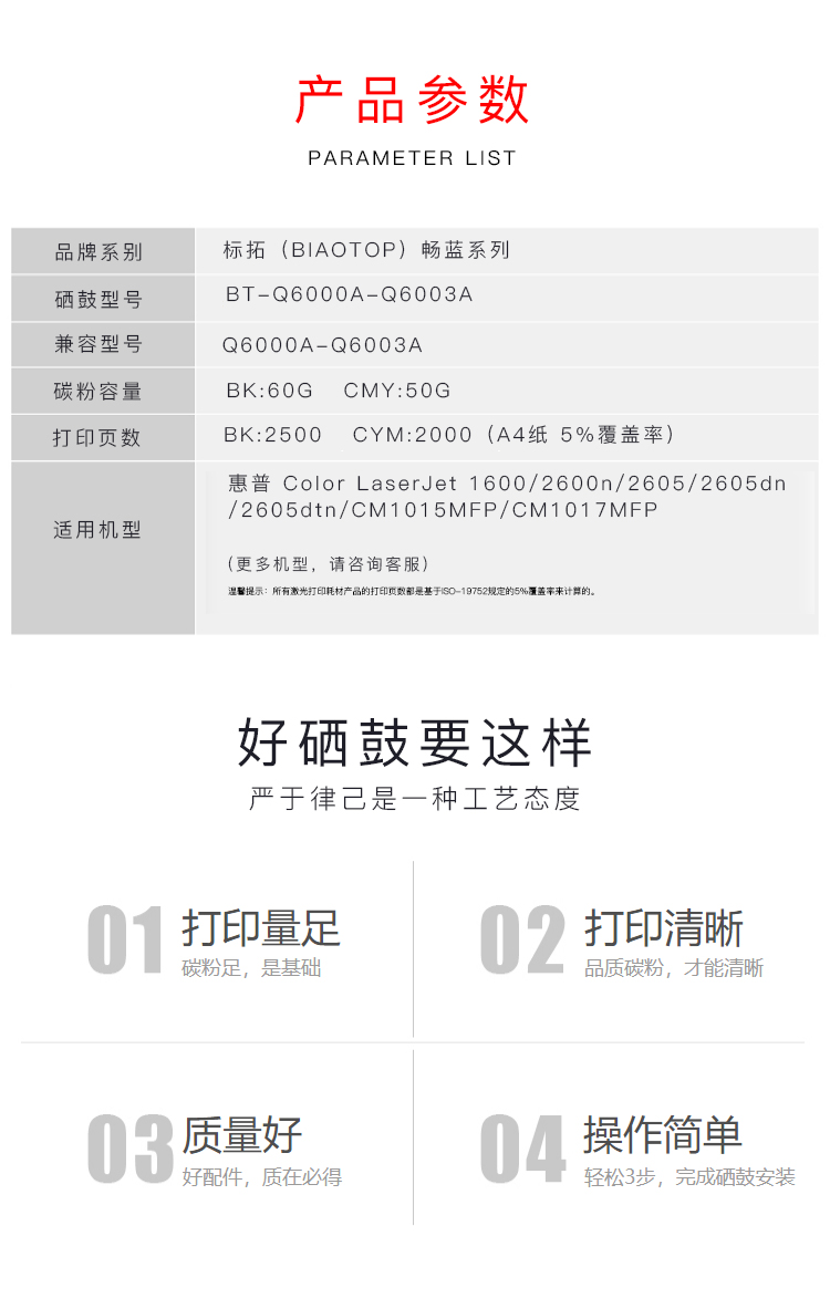 标拓 (Biaotop) Q6000A-6003A彩色硒鼓适用惠普1600/2600n/2605/CM1015MFP/CM1017MFP打印机 畅蓝系列 红色 红色