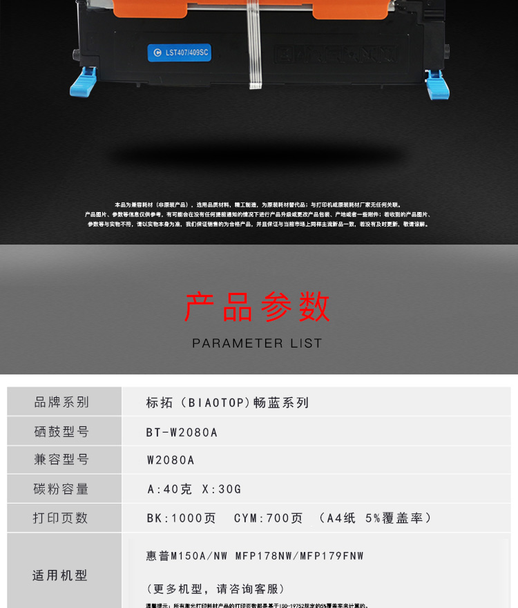 标拓 (Biaotop) W2080A-2083A彩色墨粉盒适用惠普M150A/NW MFP178NW/MFP179FNW打印机 黄色