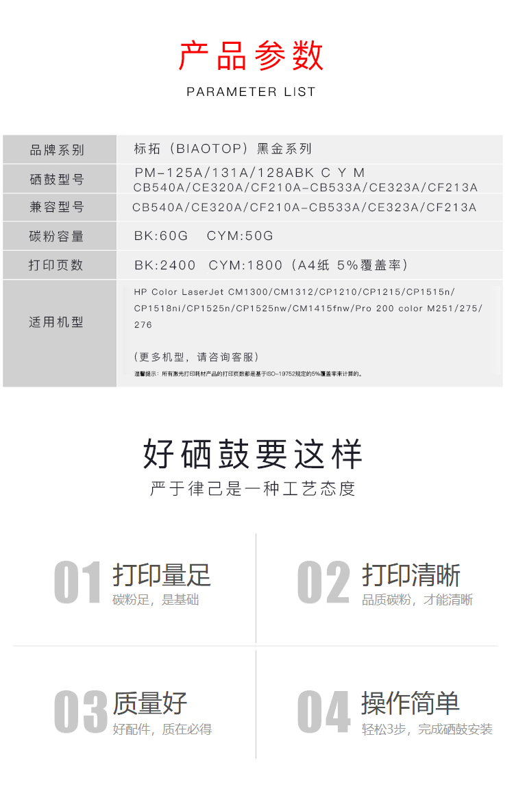 标拓 PM-125A/131A/128A H Y 打印量1800页 大容量 适用于hp CM1300 硒鼓 1.00 只/支 (计价单位:支) 黄色