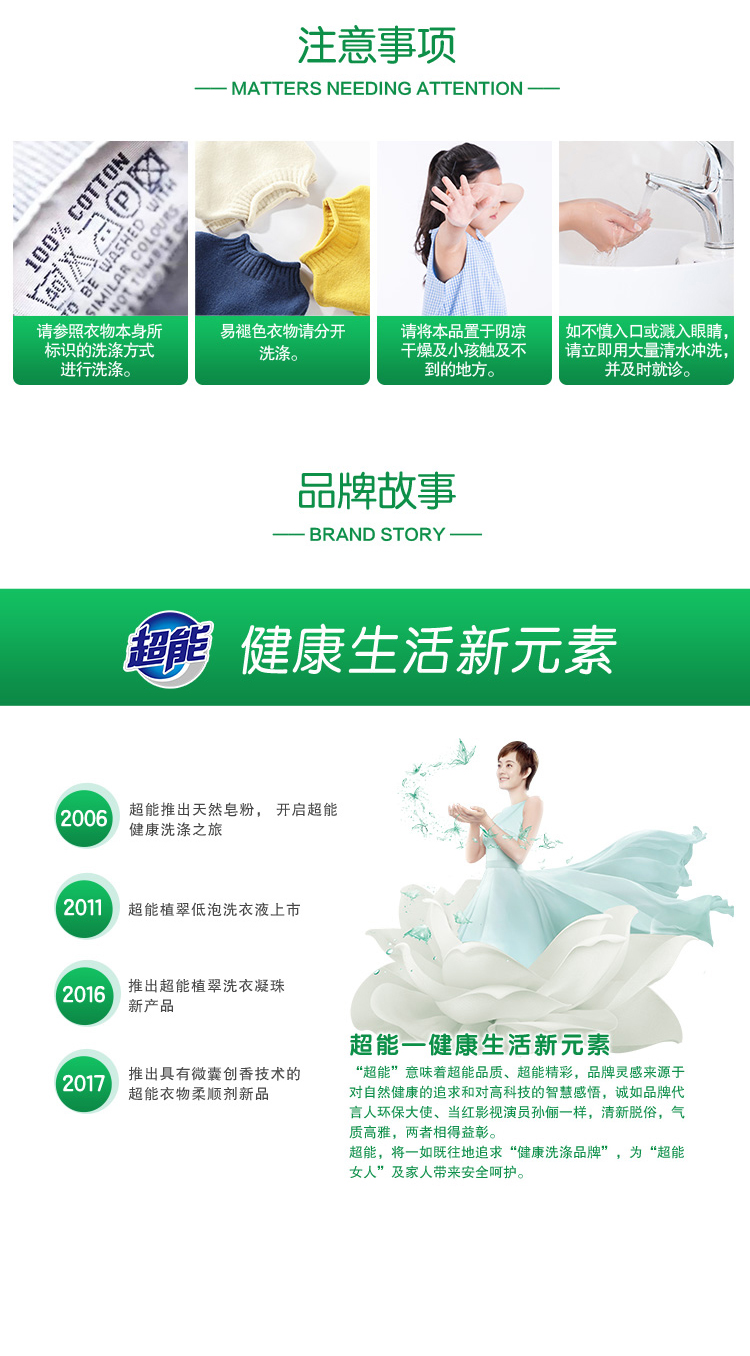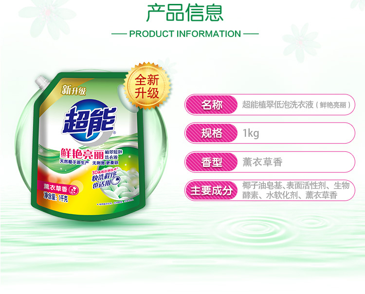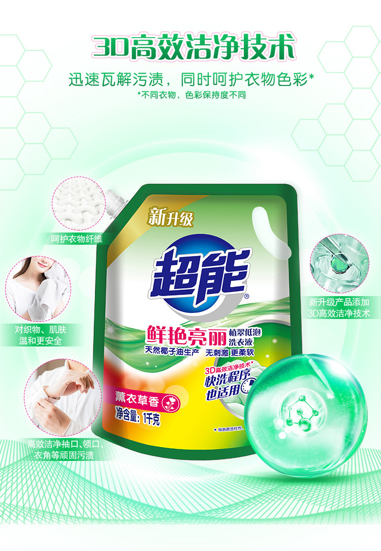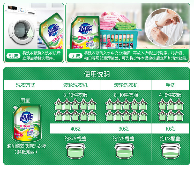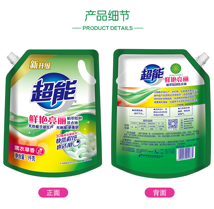超能鲜艳亮丽洗衣液1kg*2袋 白色