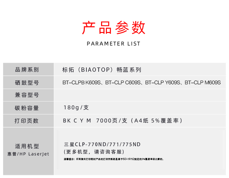 标拓(Biaotop)BT-CLP609S 彩色硒鼓适用三星CLP-770ND/771/775ND打印机硒鼓 畅蓝系列 蓝色 蓝色