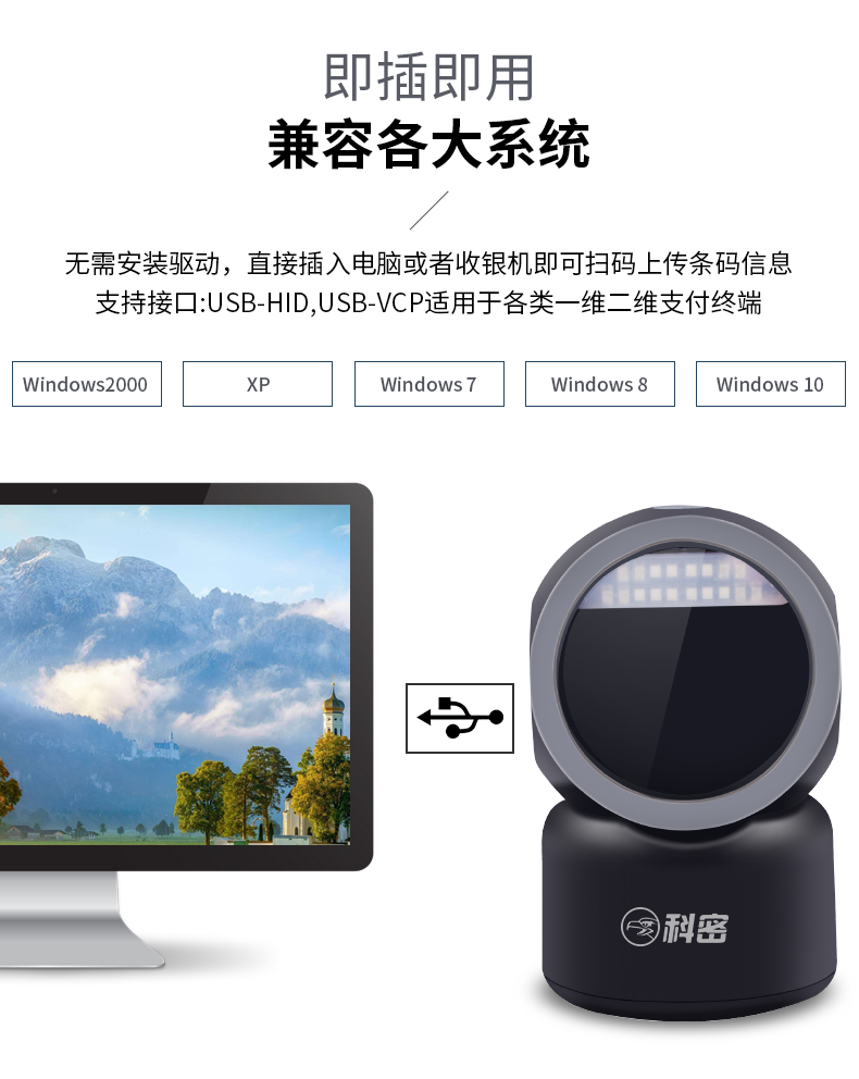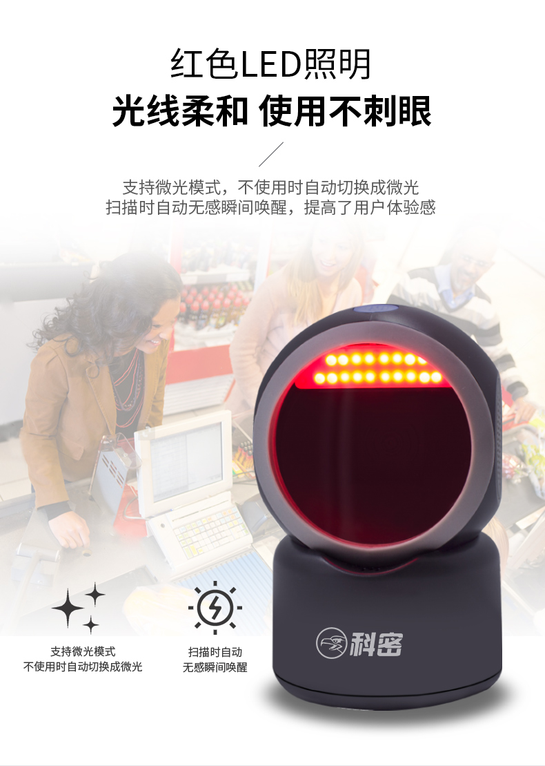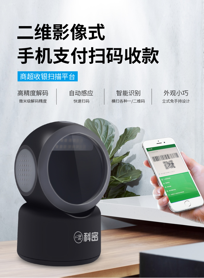 科密PT-388 有线一二维码扫描支付平台条码枪扫码盒 【加强版】单位:台 黑色