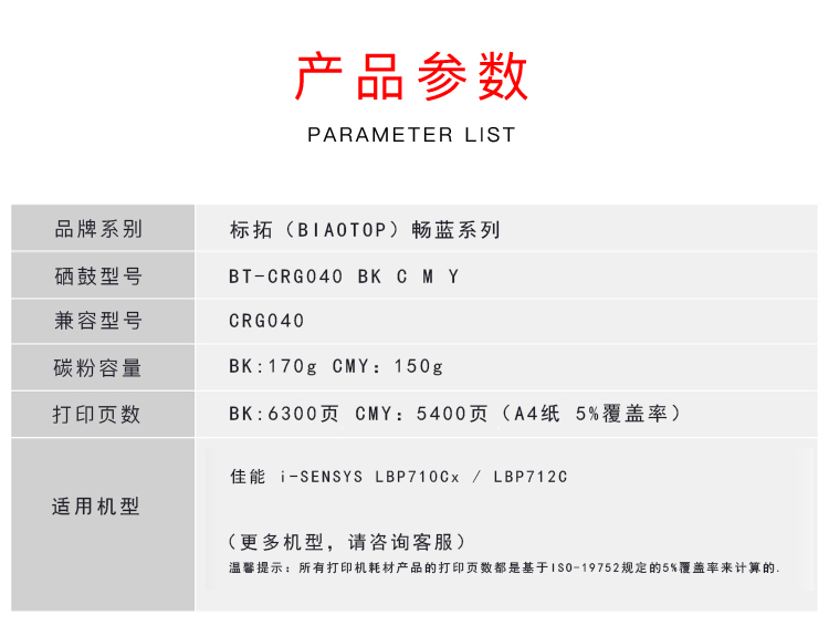 标拓 BT-CRG040 C 打印量5400页 适用于佳能i-SENSYS LBP710Cx 硒鼓 1.00 只/支 (计价单位:支) 蓝色