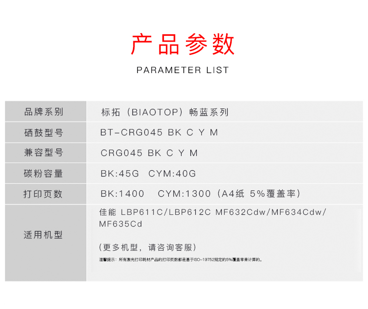 标拓 BT-CRG045 Y 打印量1300页 适用佳能LBP611C/LBP612C 硒鼓 1.00 只/支 (计价单位:支) 黄色