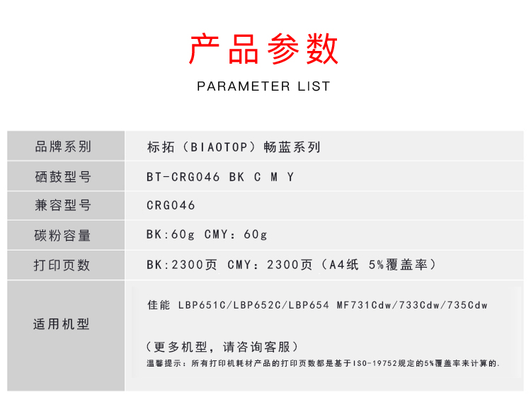 标拓 BT-CRG046 M 打印量2300页 适用佳能LBP651C/LBP652C 硒鼓 1.00 只/支 (计价单位:支) 红色