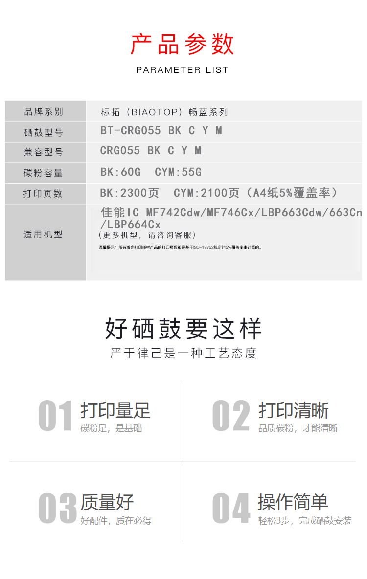 标拓 (Biaotop) CRG055彩色硒鼓适用佳能MF746Cx/MF742Cdw/LBP664Cx/LBP663Cdw/LBP663Cdn打印机 红色 红色