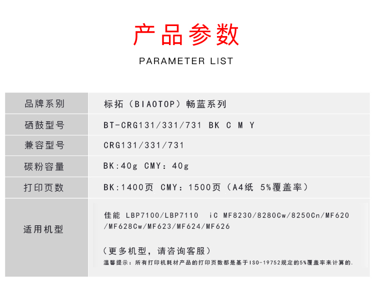 标拓 (Biaotop) CRG131/331/731彩色硒鼓适用佳能7100/7110 iC-MF8230/8280Cw/8250Cn/MF620打印机 畅蓝系列 红色 红色