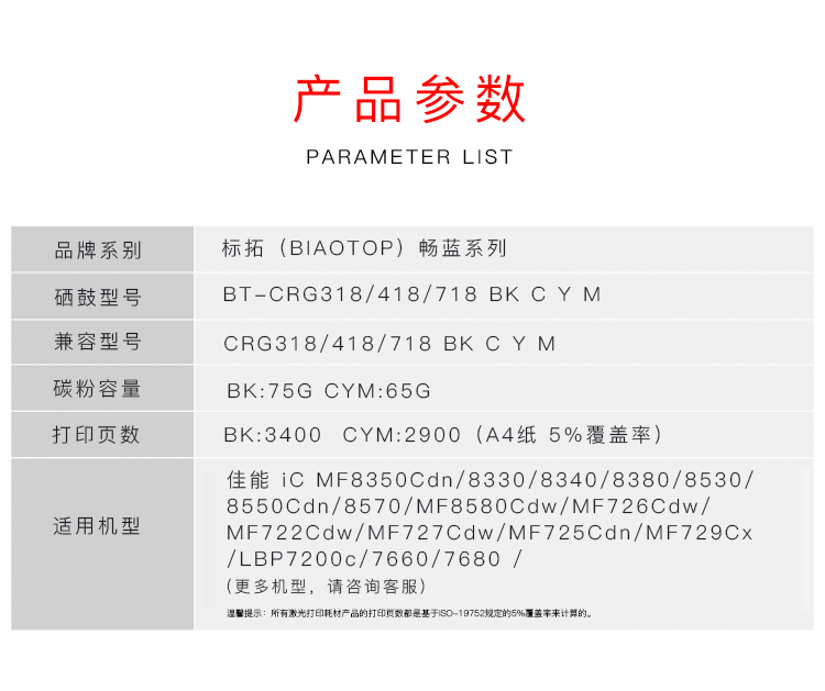 标拓 BT-CRG318/418/718 打印量2800页 适用于佳能MF8350Cdn 硒鼓 1.00 只/支 (计价单位:支) 黄色