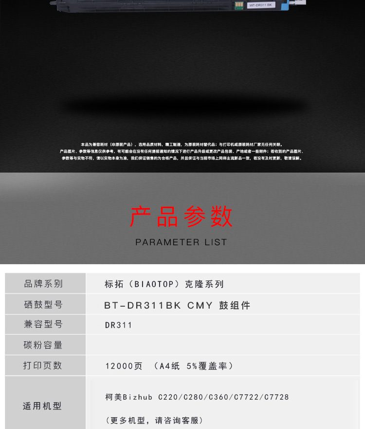 标拓 (Biaotop) DR311彩色鼓架适用柯美Bizhub C220/C280/C360/C7722/C7728复印机 蓝色 蓝色