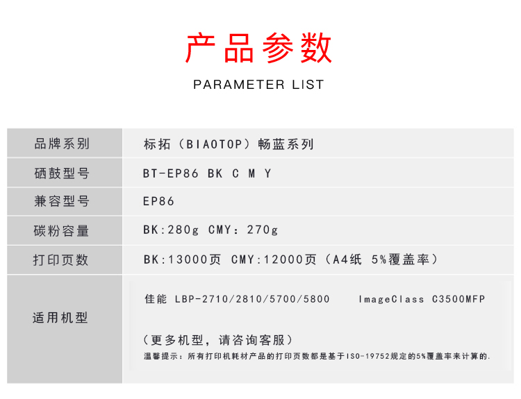 标拓 BT-EP86 M 打印量12000页 适用于佳能LBP-2710/2810/5700 硒鼓 1.00 只/支 (计价单位:支) 红色