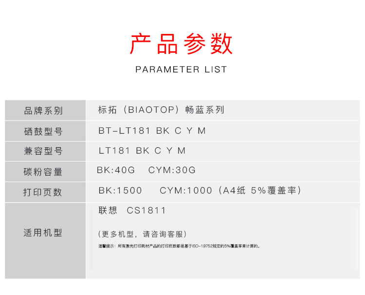 标拓 BT-LT181 Y 打印量约1000页 适用联想CS1811 硒鼓 1.00 只/支 (计价单位:支) 黄色