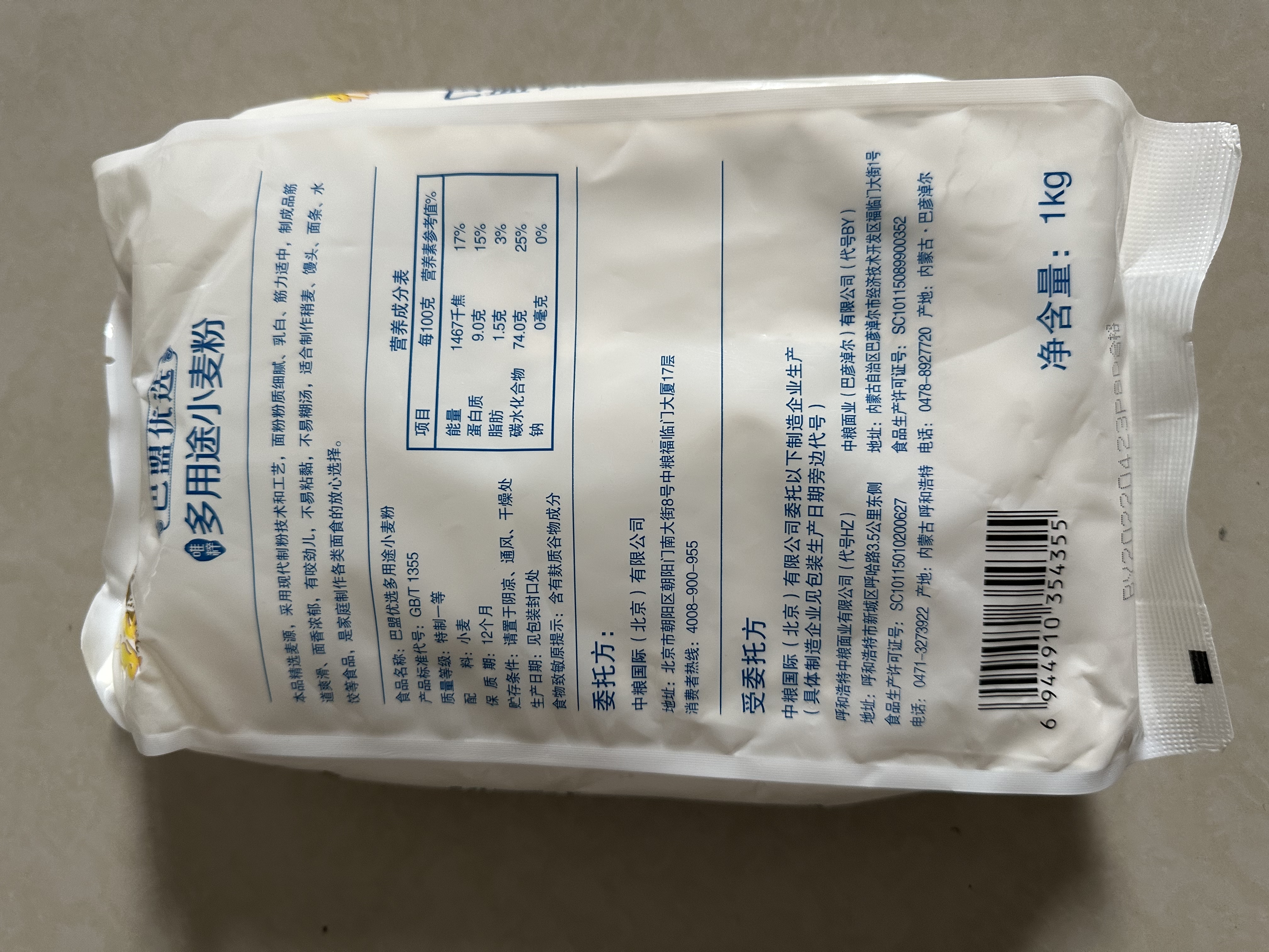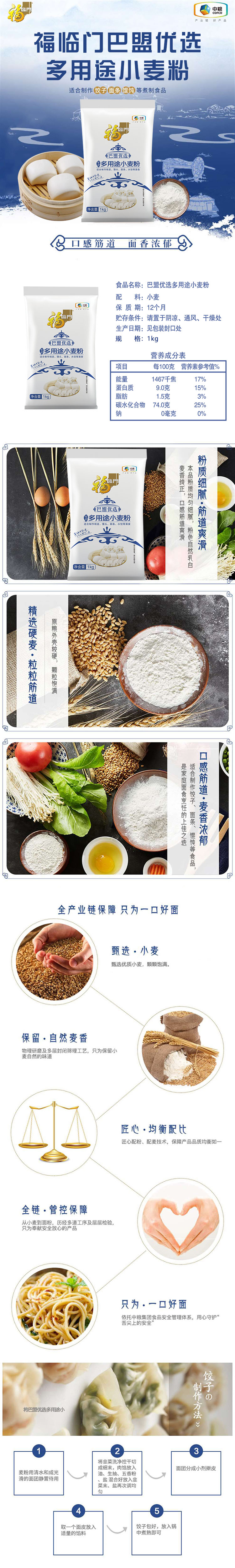中粮福临门巴盟优选多用途小麦粉1kg (单位:袋) 本白色