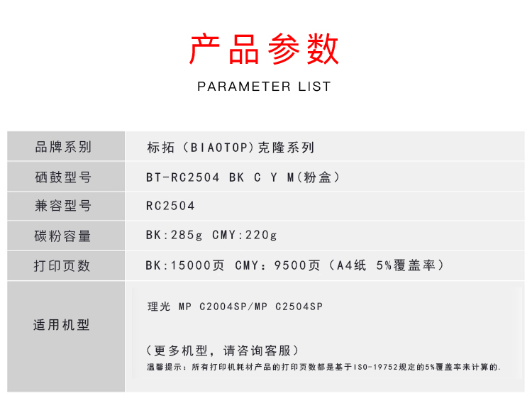 标拓 (Biaotop) RC2504彩色粉盒适用理光MPC2004SP/MPC2504SP复印机 克隆系列 黑色 黑色
