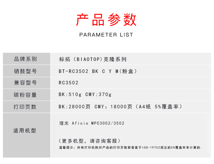 标拓 (Biaotop) RC3502彩色粉盒适用 理光Aficio MPC3002/MPC3502复印机 克隆系列 黄色 黄色