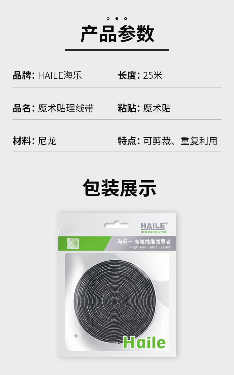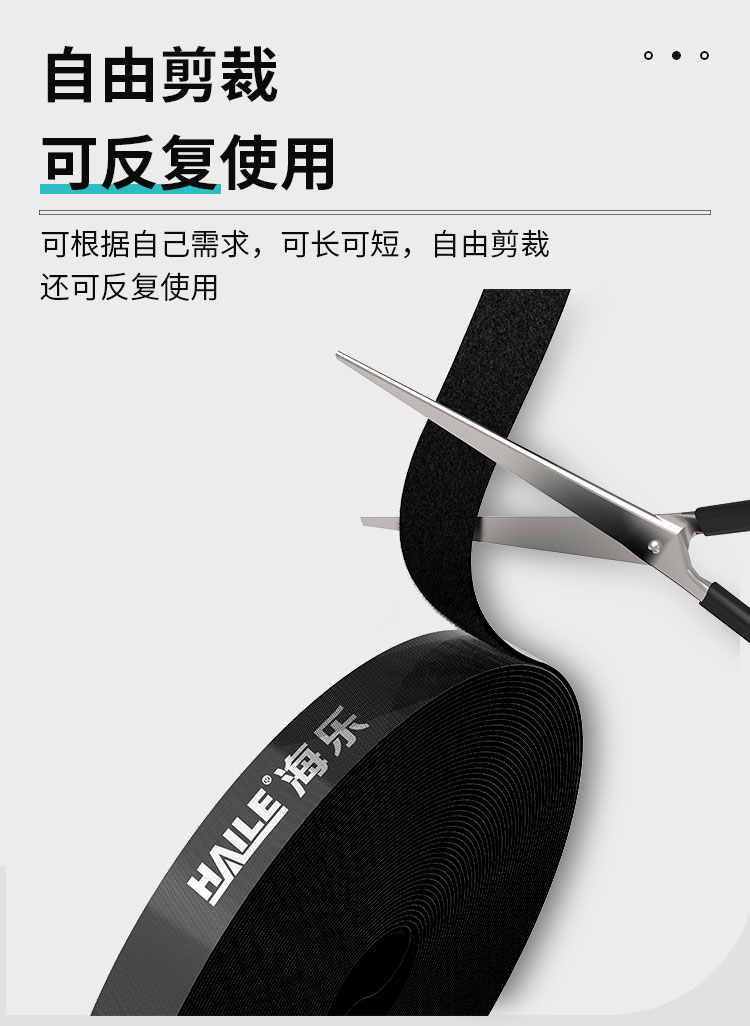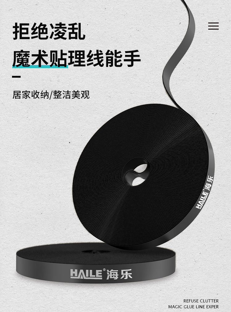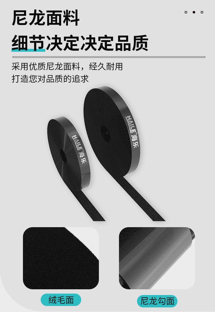 海乐(Haile)魔术贴扎带布扎带1.2cm宽背靠背绑带黑色25米ZD-1H-25M 黑色