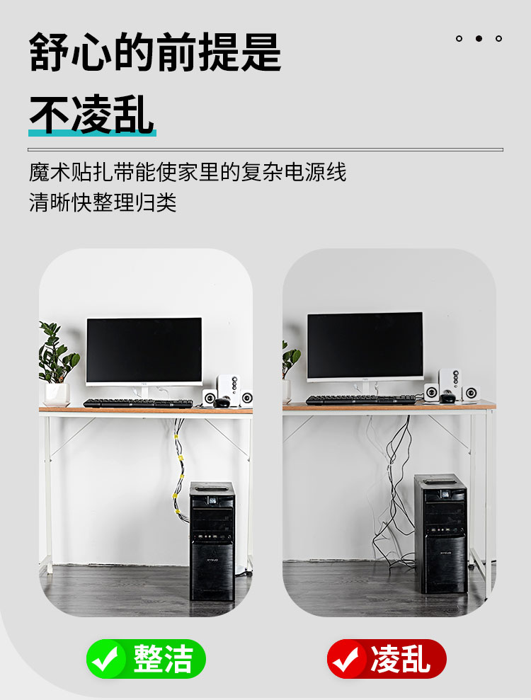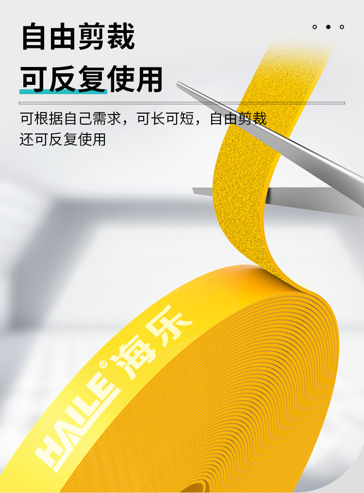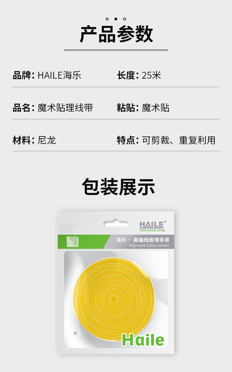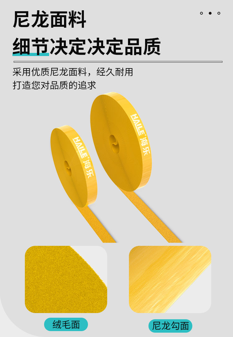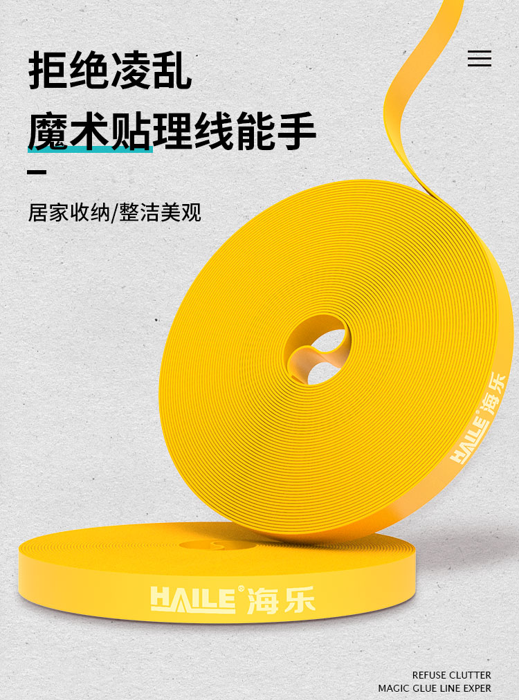 海乐(Haile)魔术贴理线带布扎带25米1.2cm宽 背靠背绑线带 收纳固定整理绕线带理线器捆线带黄色ZD-1C-25M 黄色