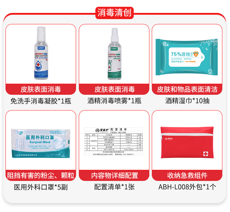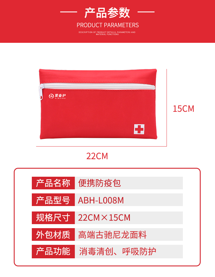 爱备护 便携应急包 开学复工健康包 ABH-L008M 红色
