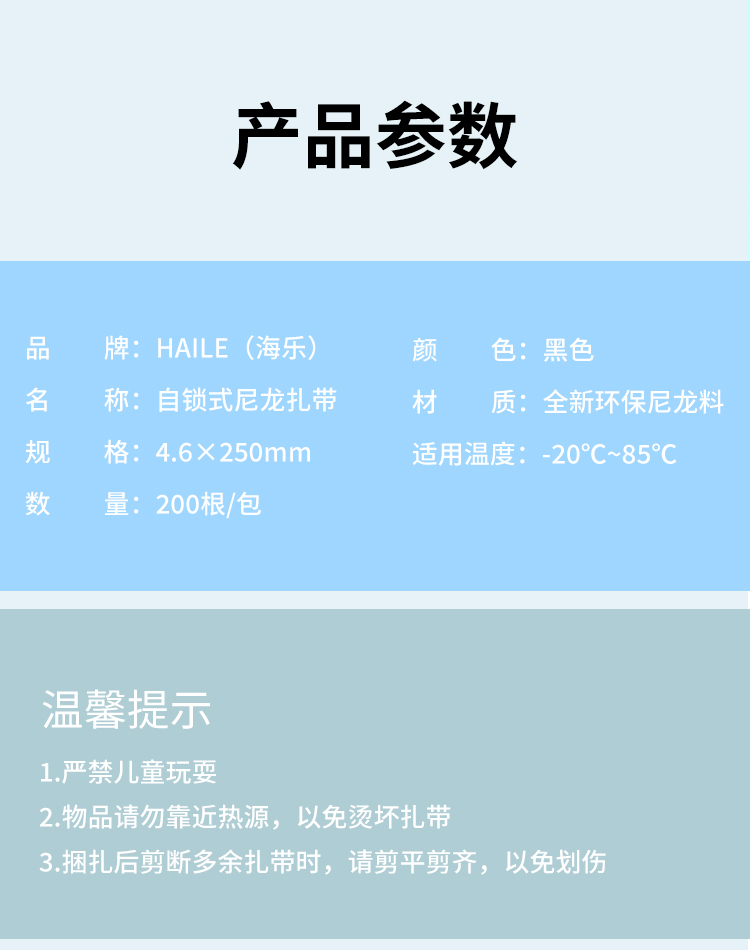 海乐(Haile)扎带尼龙扎带ZD-25H-200多功能扎线带束线带4.6*250mm 黑色200根 黑色