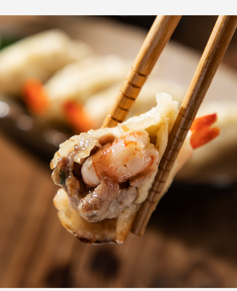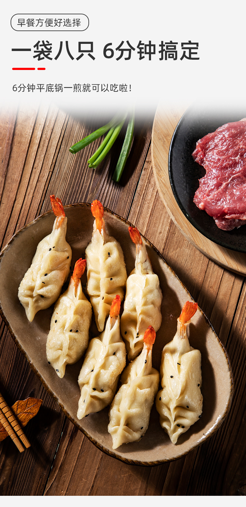 一条狗美味凤尾虾锅贴煎饺蒸饺速冻饺子速食方便早餐面点凤尾虾锅贴240g/盒*4盒(8只装×4盒) 莓果色