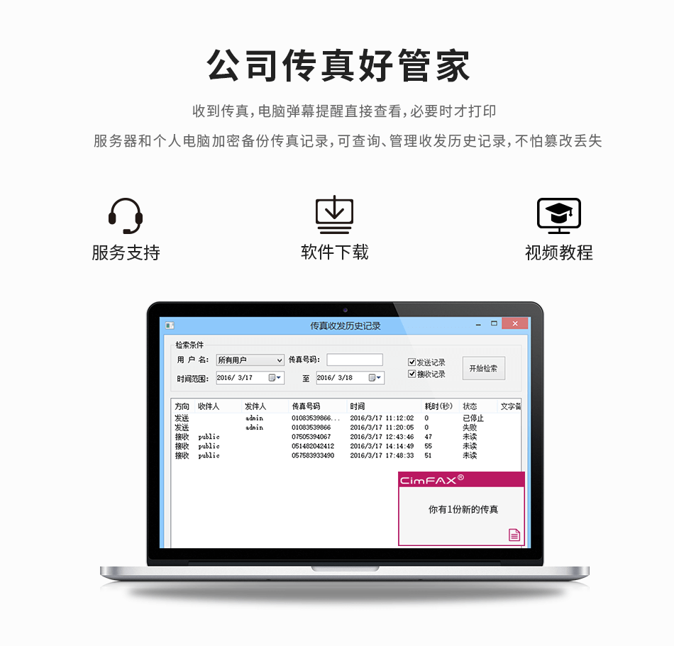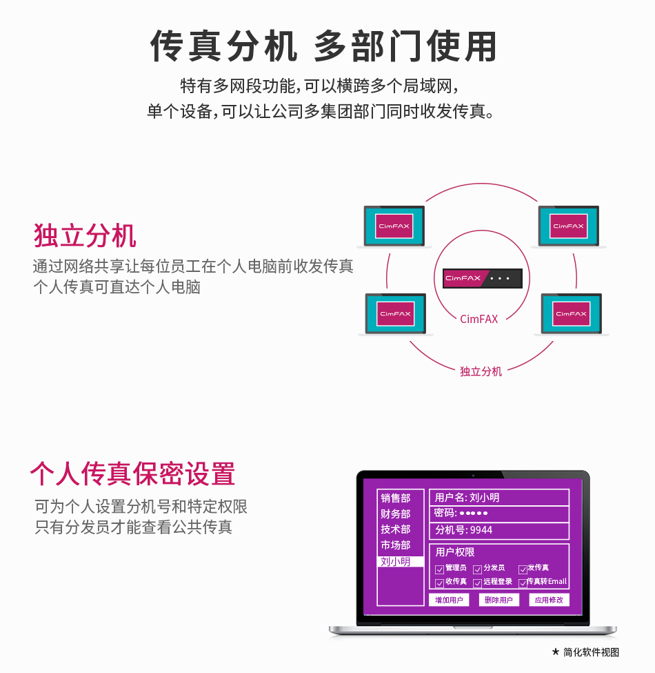 先尚CimFAX无纸传真机 专业版H5S(CF-P4180) 100用户 8GB 高速33.6K 传真服务器 网络传真机 黑色