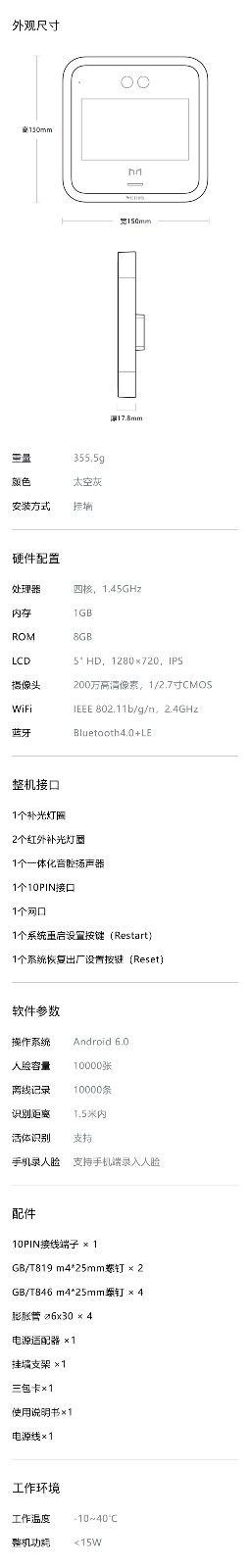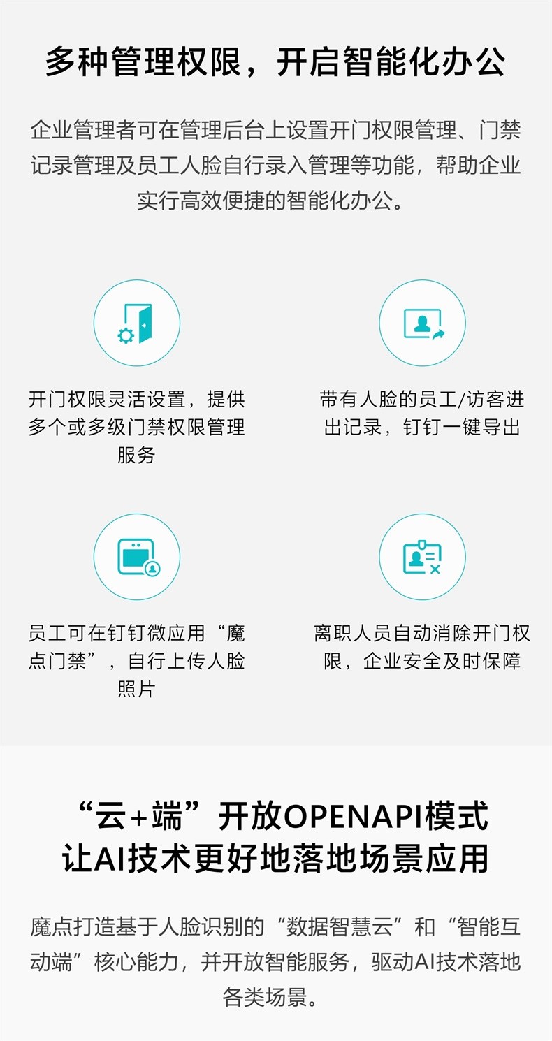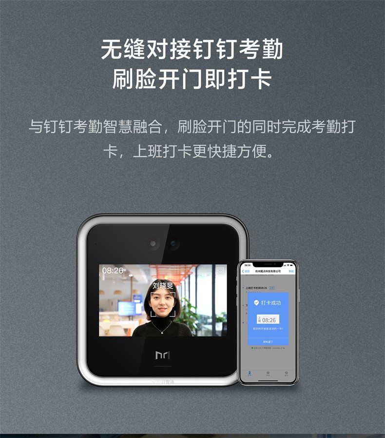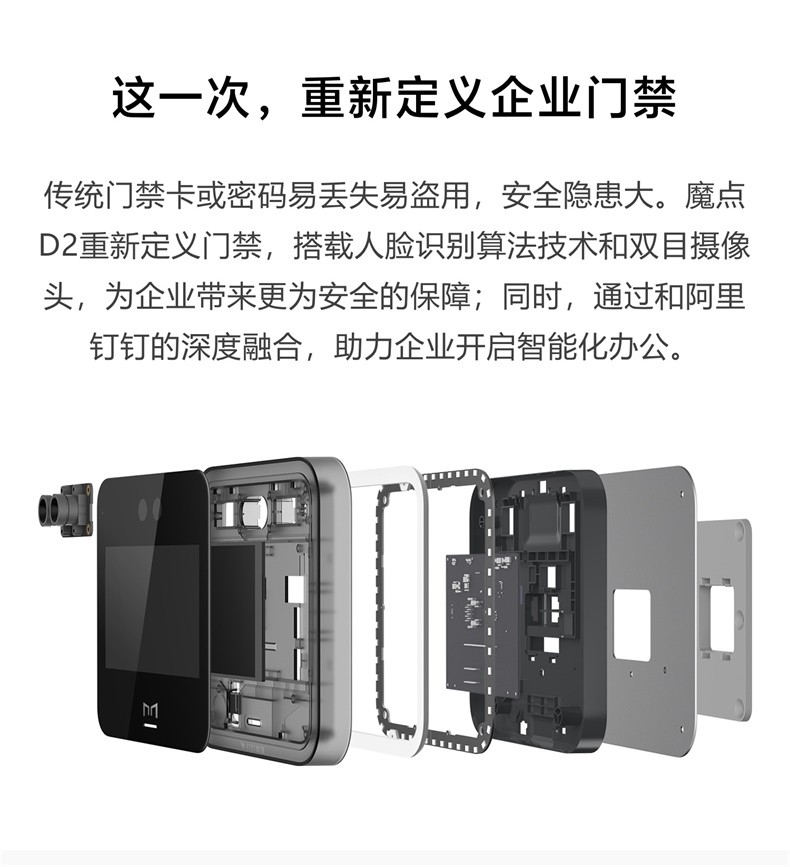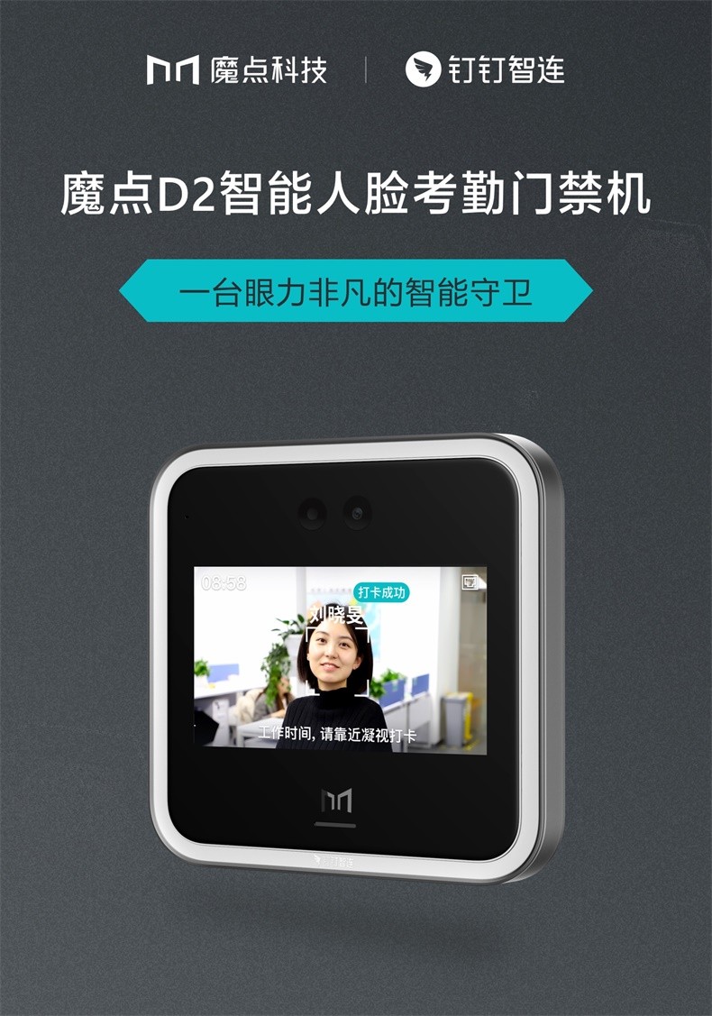 魔点D2智能人脸云考勤门禁机 钉钉动态人脸识别非指纹玻璃门禁系统办公室刷脸测温门禁锁签到打卡机一体机 D2主机(不含门禁配件) 黑色
