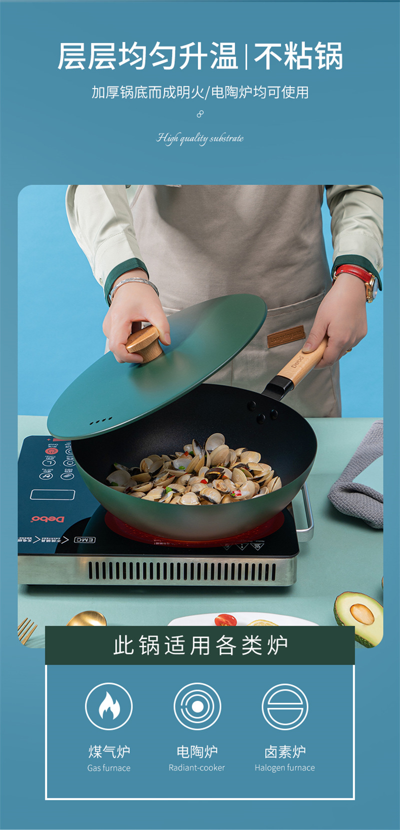 德铂(Debo)DEP-788 威廉空间套装锅 墨绿色 (单位:套) 绿色