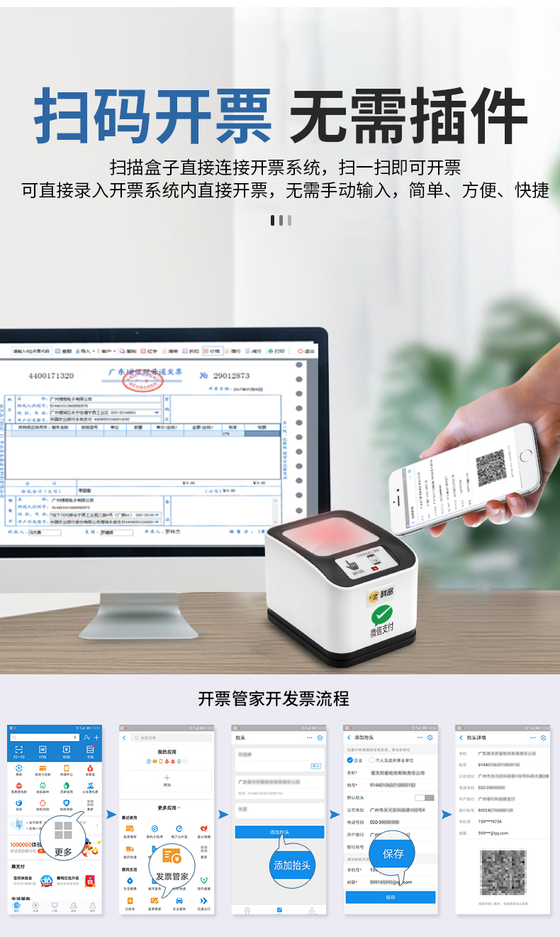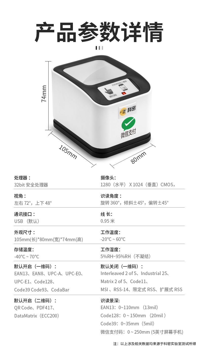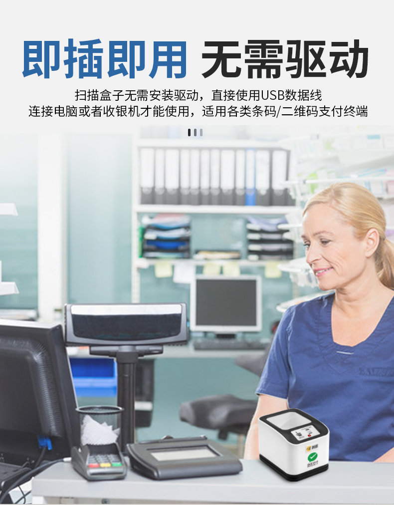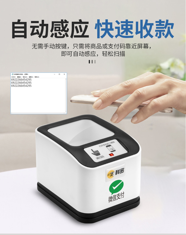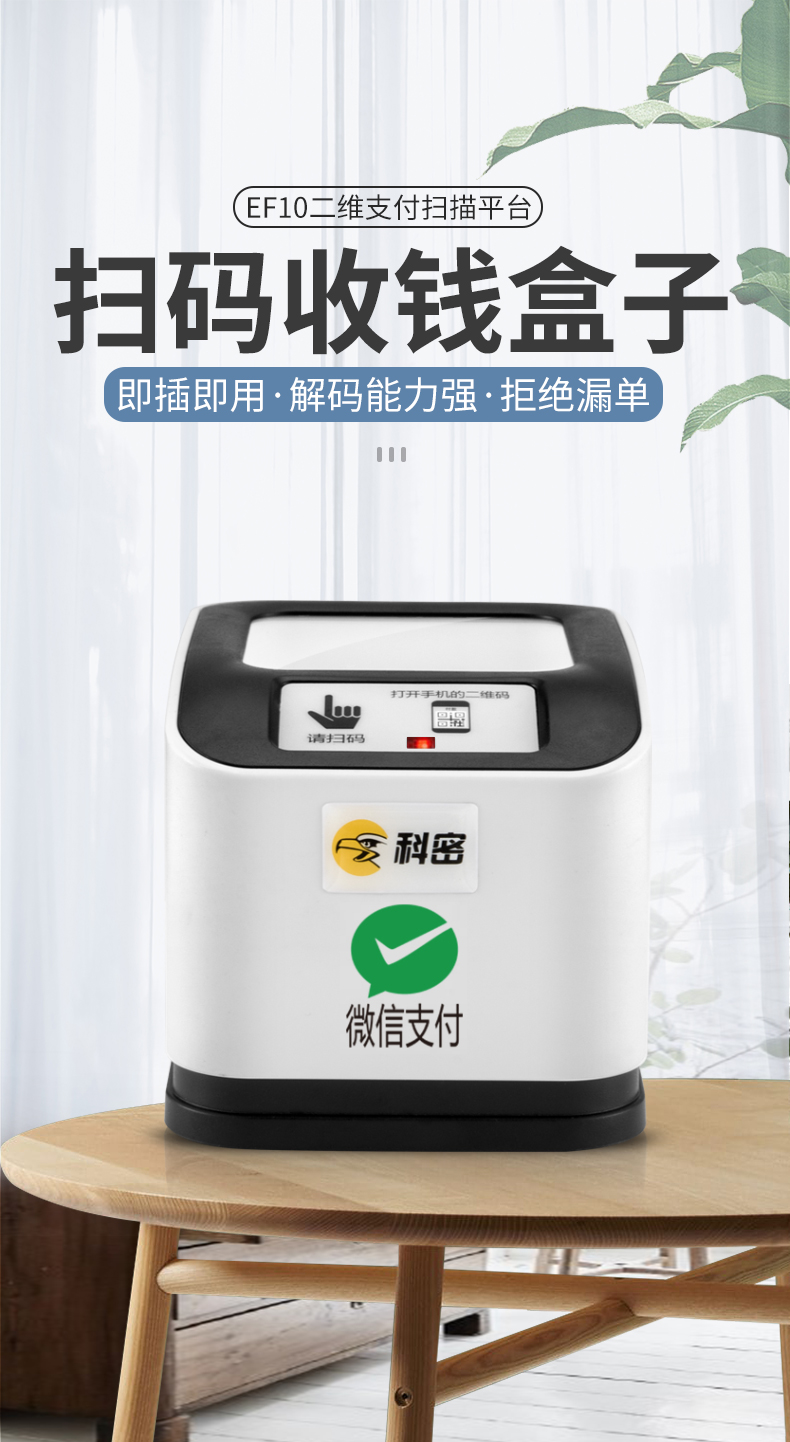 科密EF10 有线一二维码扫描支付盒子平台扫描器扫码枪条码枪 医保码健康码扫码器 单位:台 白色