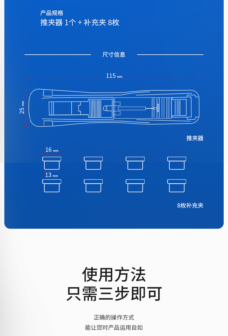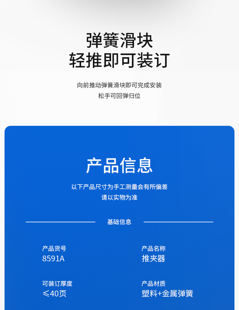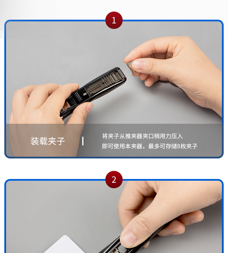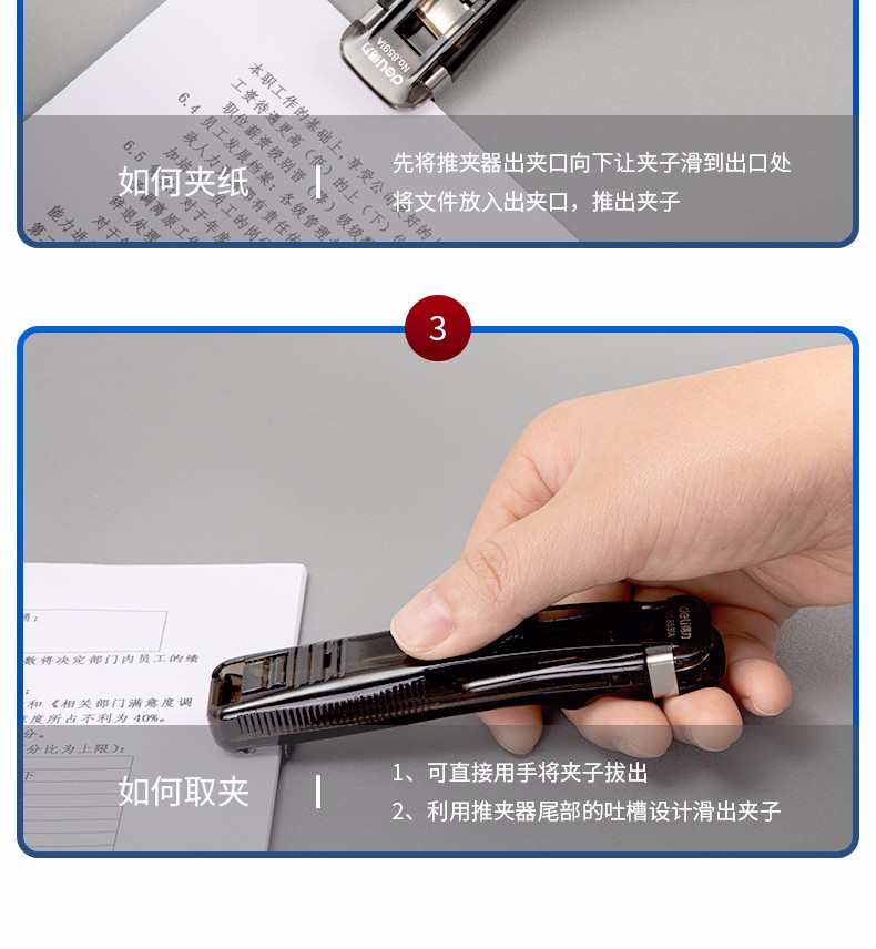 得力 金属推夹器套装【1个推夹器8枚补充夹】 透明白8591A+3卡推夹器8592 白色