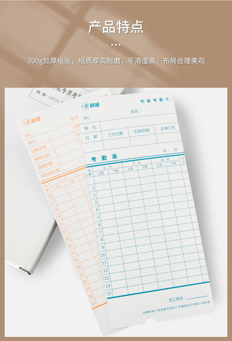 科密(COMET)300g热敏卡钟卡纸 考勤机打卡机纸卡卡纸 白色