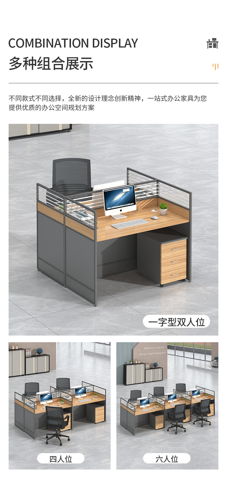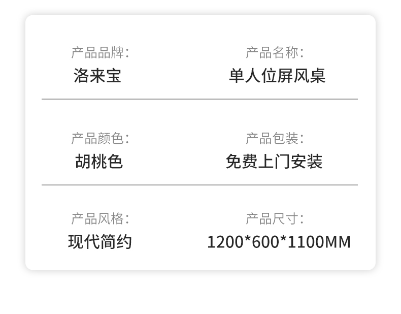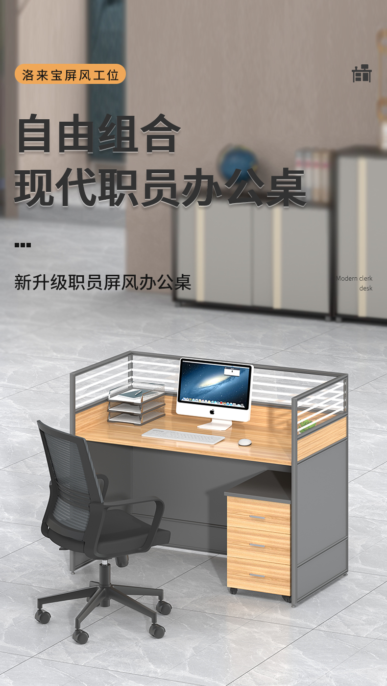 洛来宝办公桌椅组合职员工作位员工电脑桌屏风办公桌单人位(含柜椅)单位:张 胡桃色