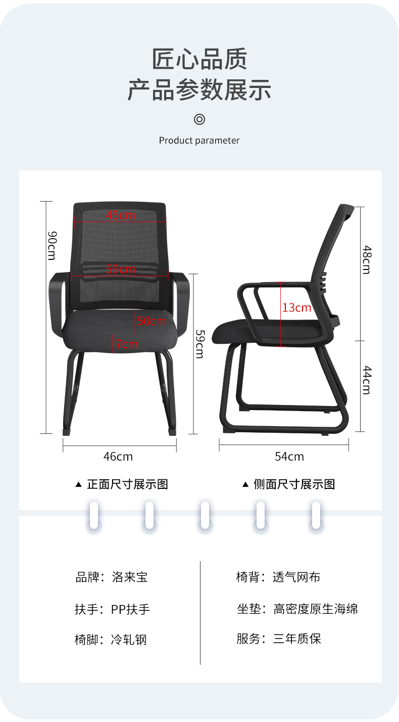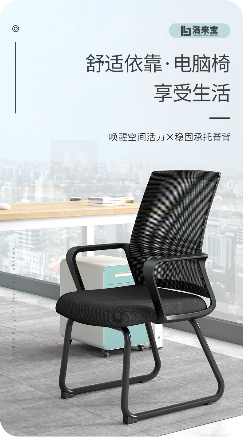 洛来宝 办公椅休闲会议椅弓形椅职员培训椅家用电脑椅 黑框黑网弓型椅 黑色