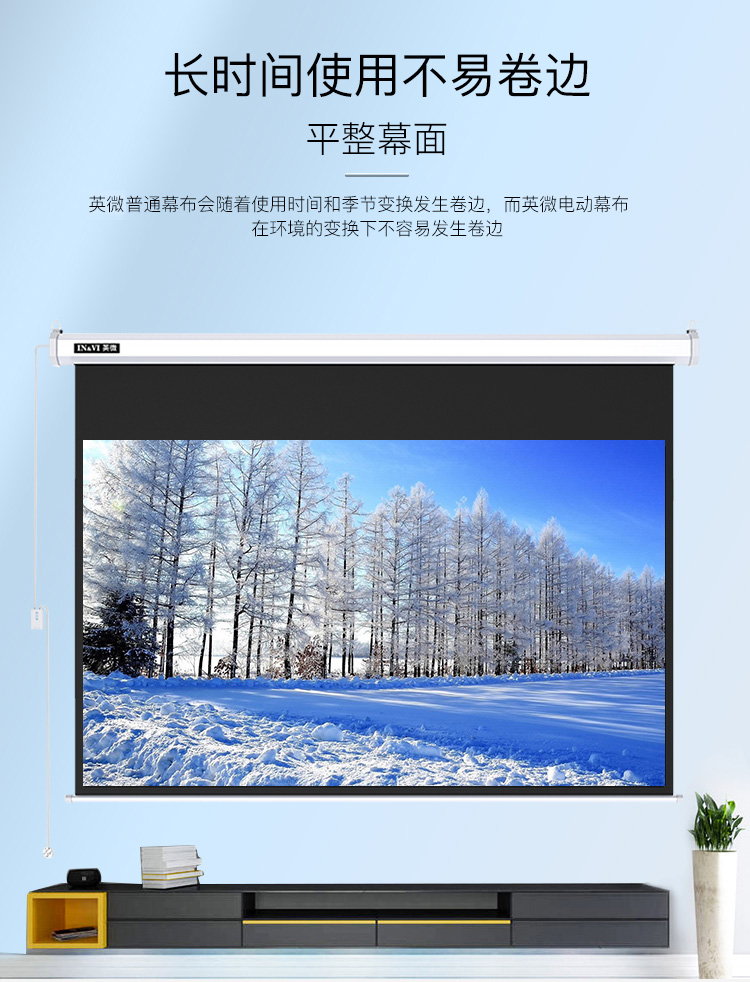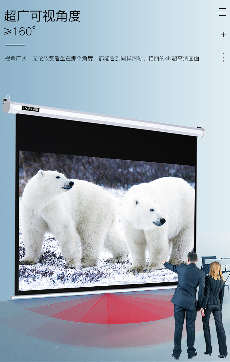 英微(IN&VI)100英寸16:9高清遥控电动幕布家用投影仪幕布办公投影机幕布投影布 白色