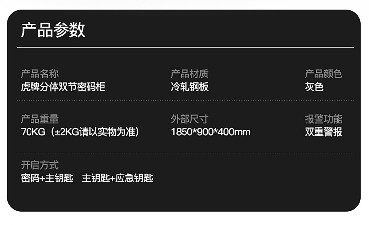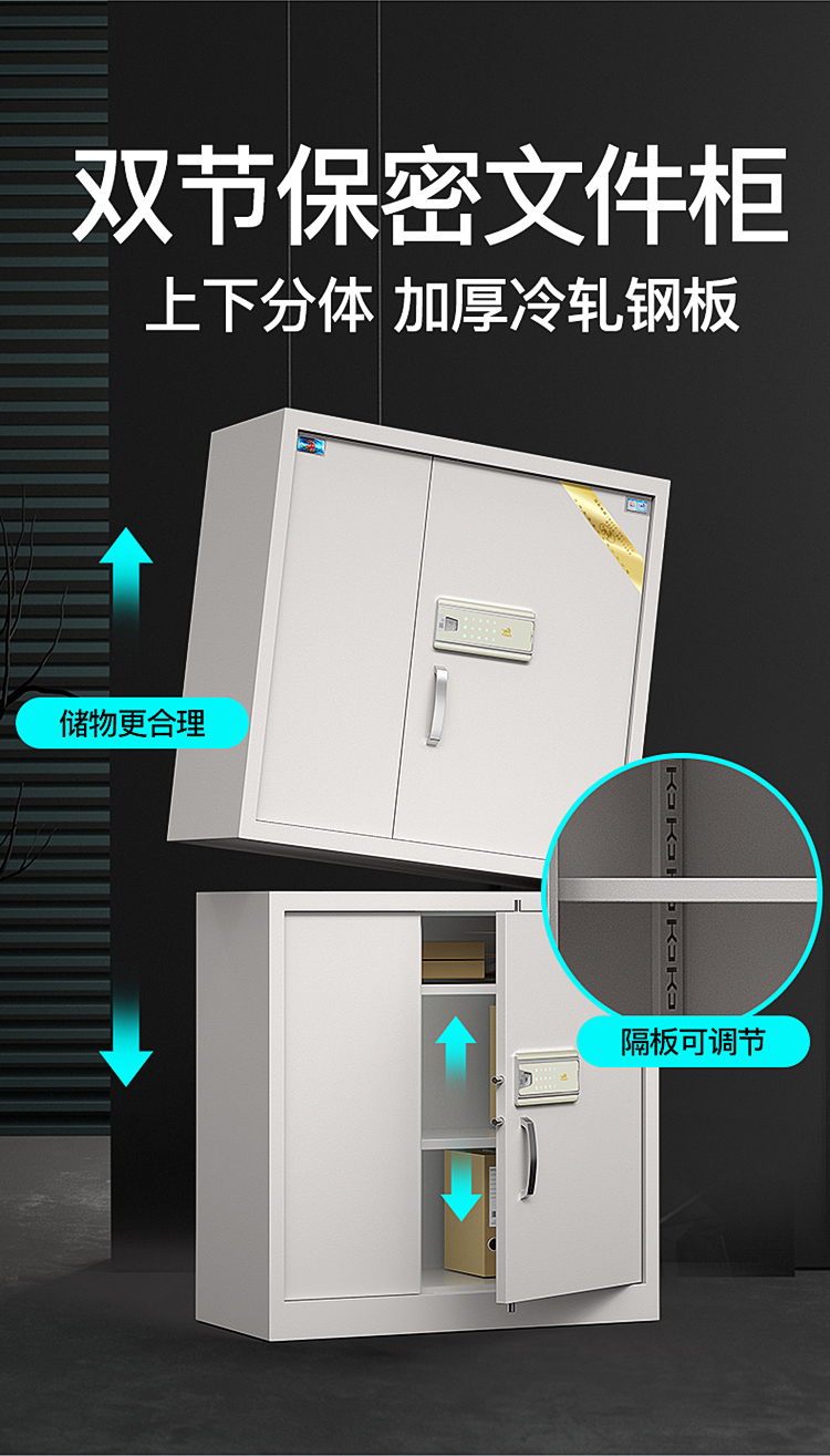 虎牌电子保密柜档案柜资料柜加厚钢板分体双节大型密码锁钢制保险柜器材柜员工柜办公柜文件柜 灰色 灰色