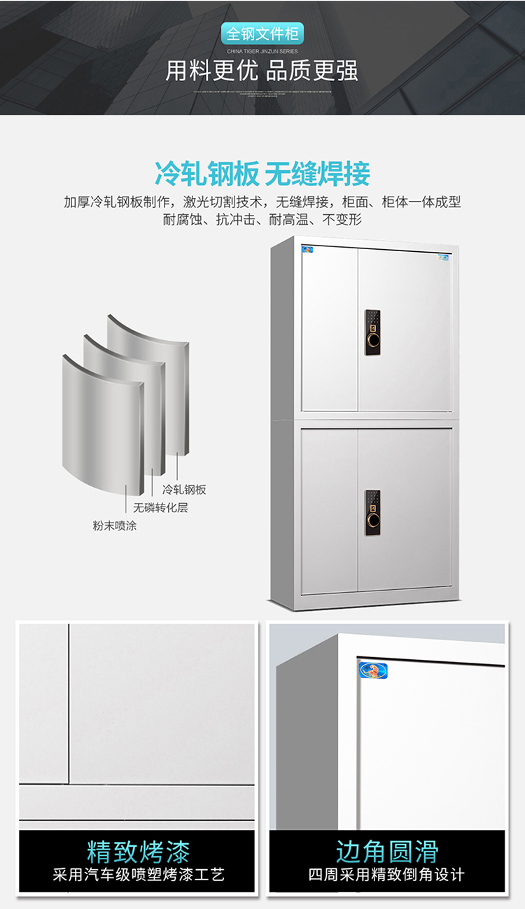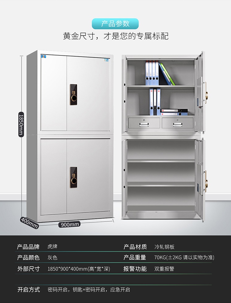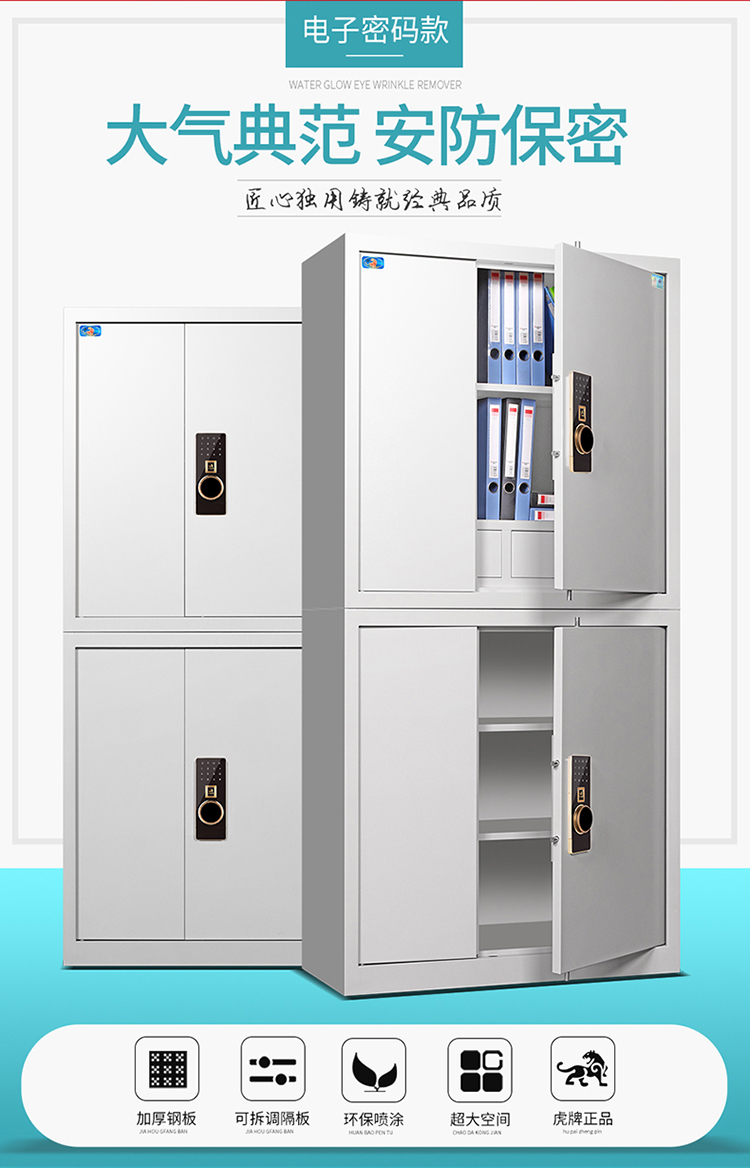 虎牌电子保密柜档案柜资料柜大型密码锁分双节钢制保险柜办公柜文件柜 灰色 灰色