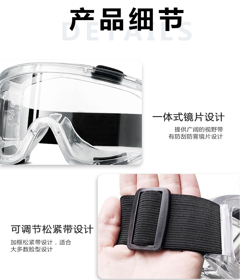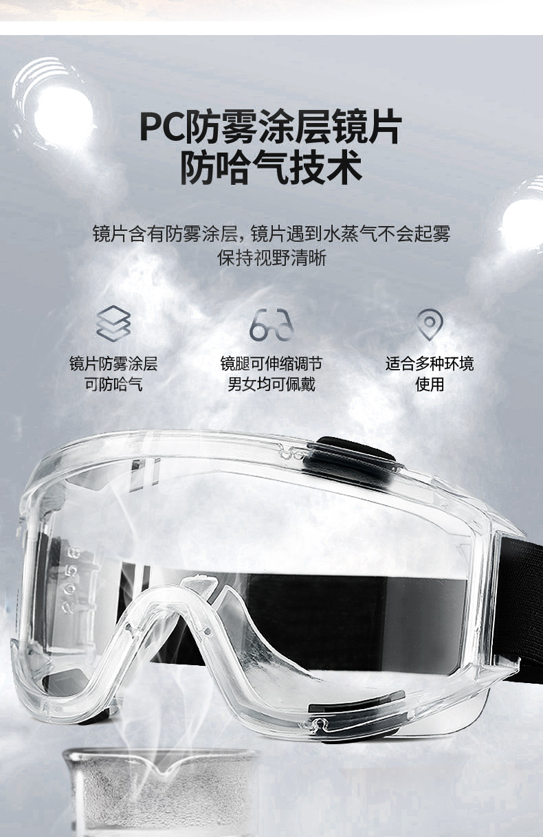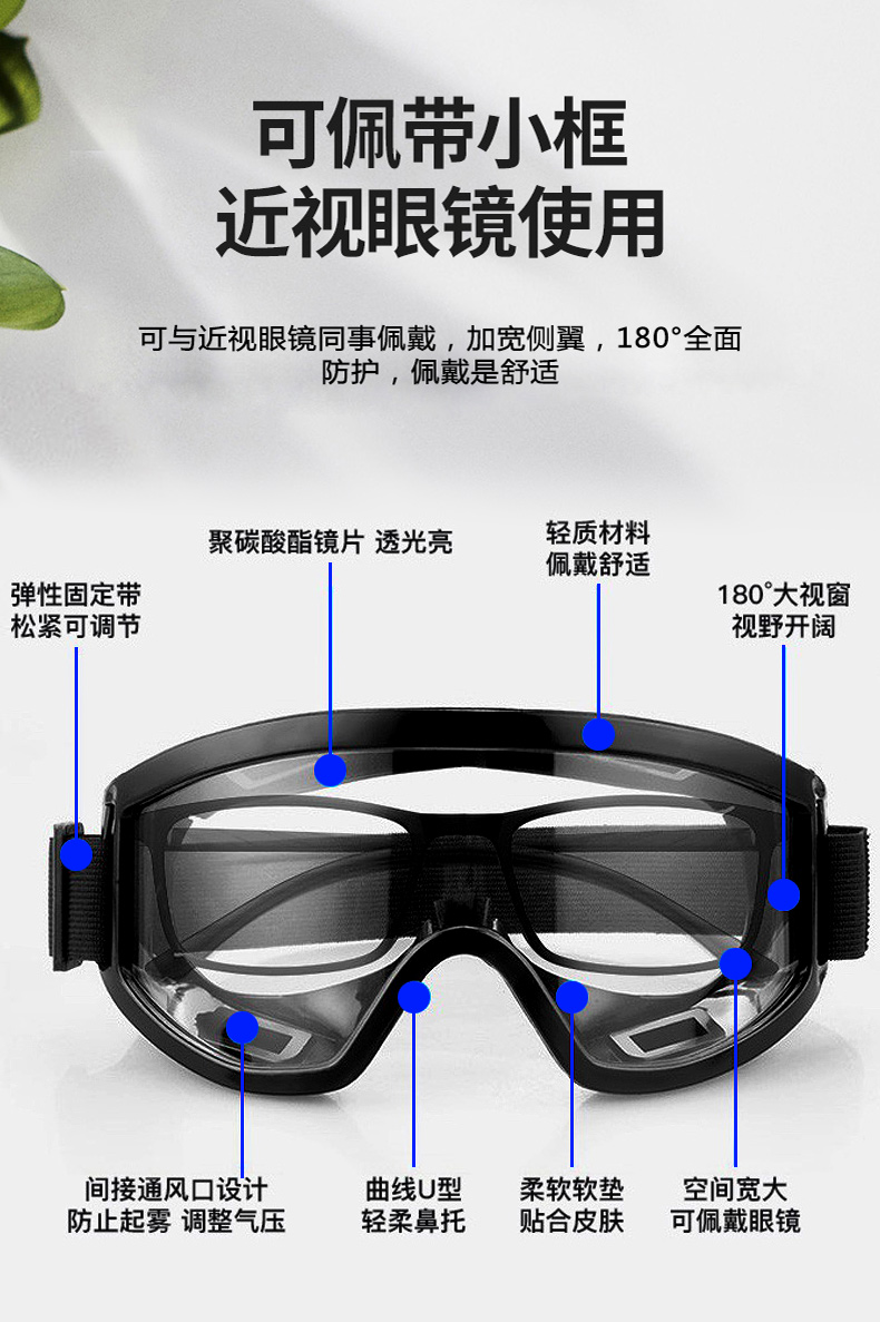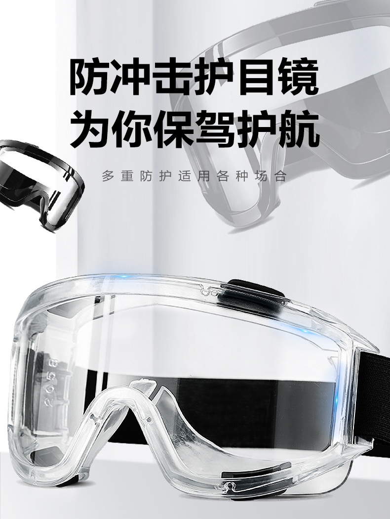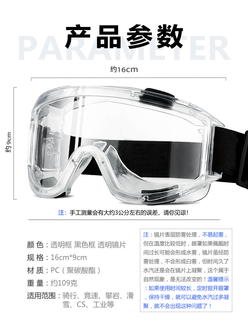 者也全密封护目镜多功能防雾劳保防护眼镜防尘挡风骑行防飞溅防风沙可带近视镜 透明防雾 黑色