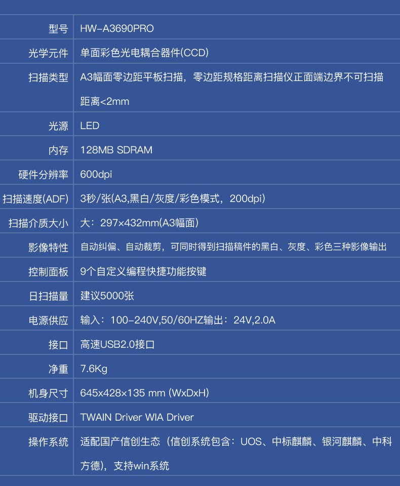 汉王(Hanvon) HW-A3690Pro 国产A3高速平板零边距档案扫描仪 汉王 HWA3690PRO(A3高速平板扫描仪 ) 白色