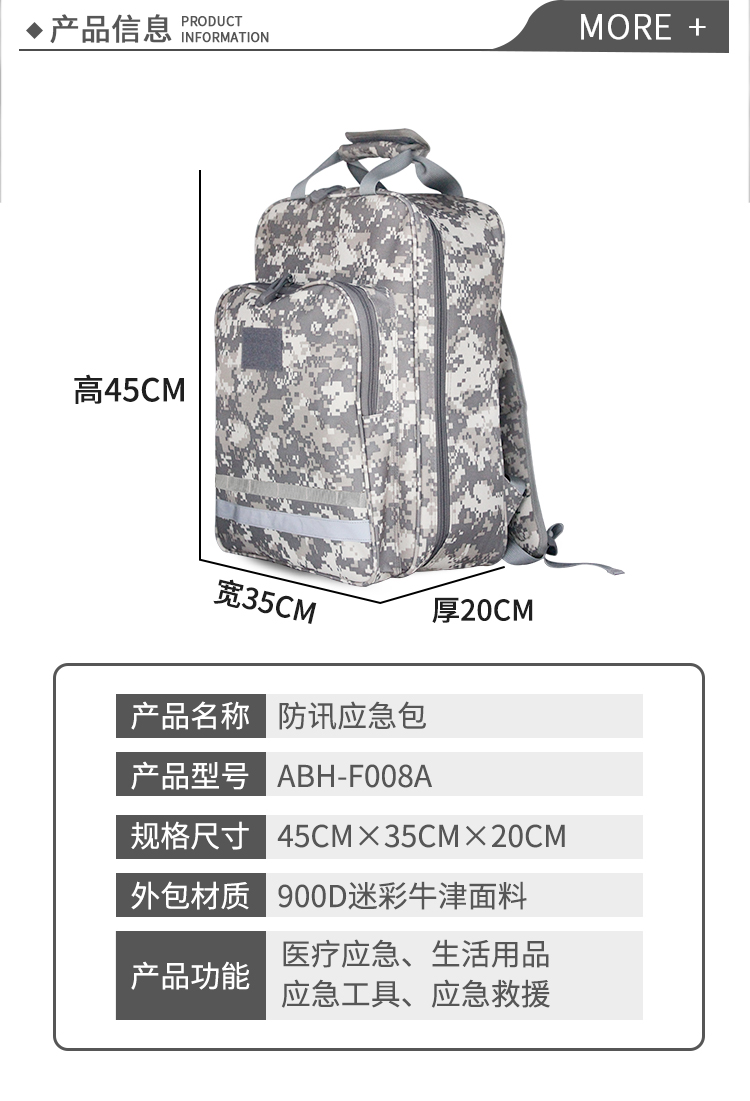 爱备护 防汛应急包 32L防水综合 ABH-F008A 迷彩 高档900D牛津面料 含37种80件急救用品 军绿色