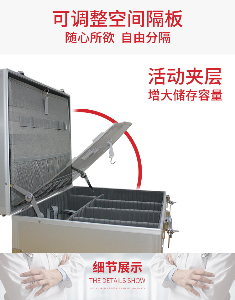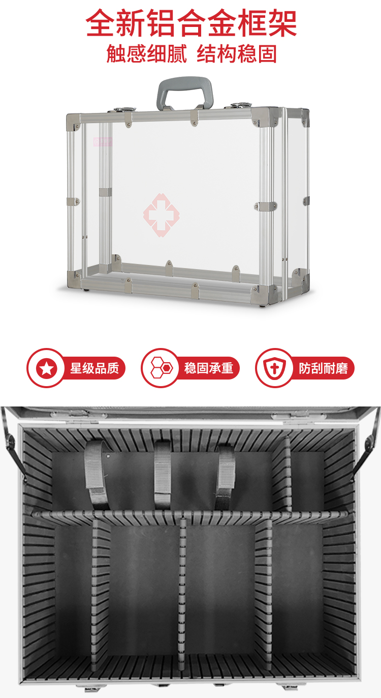 爱备护 专业救护急救箱(内科型) 铝合金手提 ABH-M004A 金属银 铝合金边框、铝塑面板 含43种65件急救用品 银色