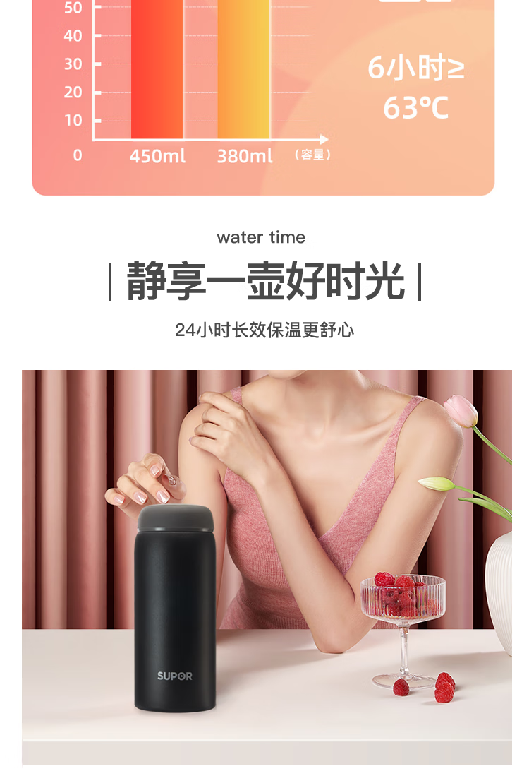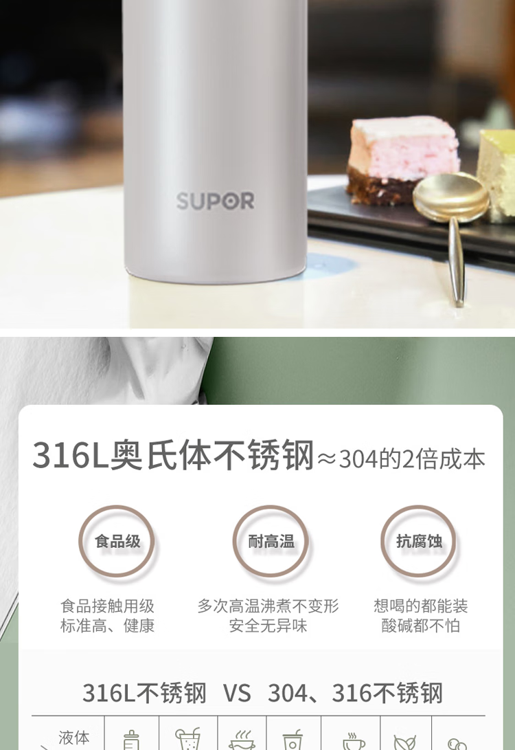 苏泊尔保温杯.Q套装320ML.晶石黑+晶石白 TK22001V(单位:套) 白+黑
