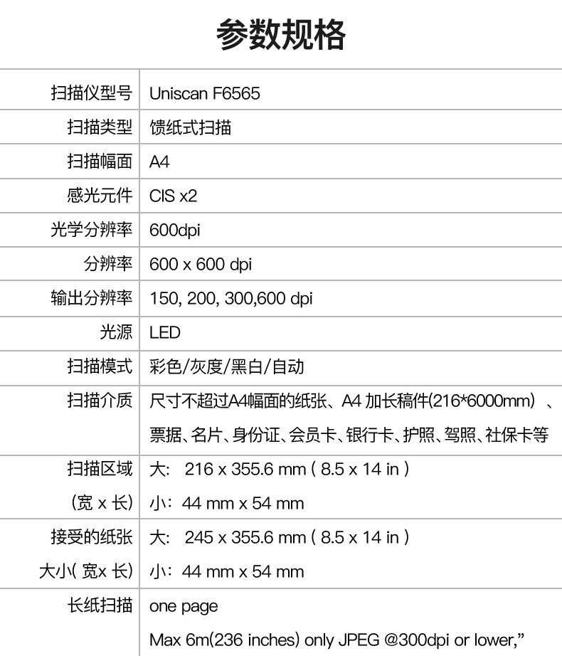 紫光(UNIS) F6565 A4幅面自动进纸双面彩色扫描仪 (65页130面/分钟) 官方标配 台 黑色