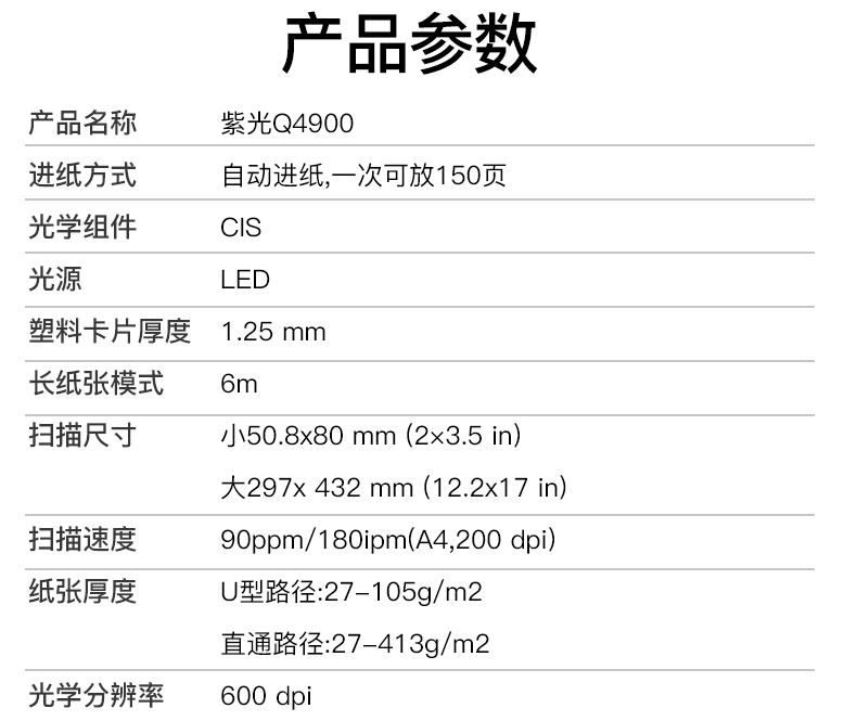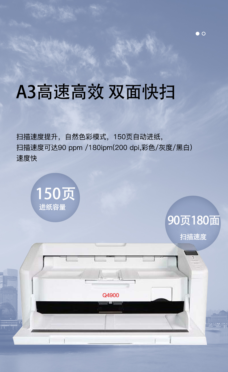 紫光(UNIS) Q4900 馈纸扫描仪 A4(兼容A3)(90页180面每分钟) 官方标配 台 白色