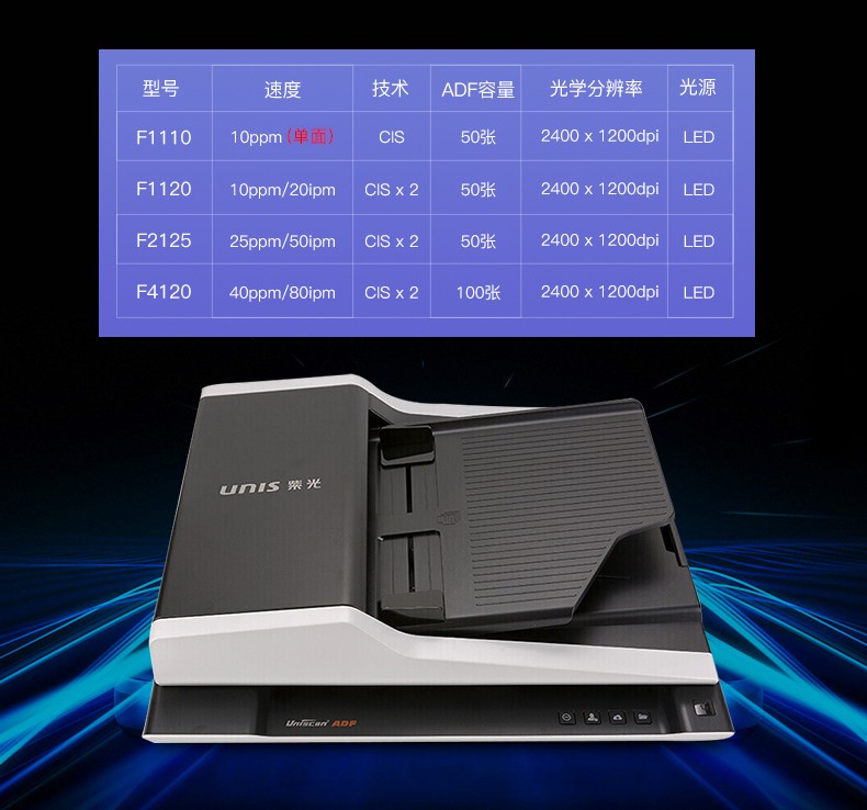 紫光A4幅面平板+ADF双平台扫描仪F2125 ADF双面(25页50面/分钟) 官方标配 台 黑色