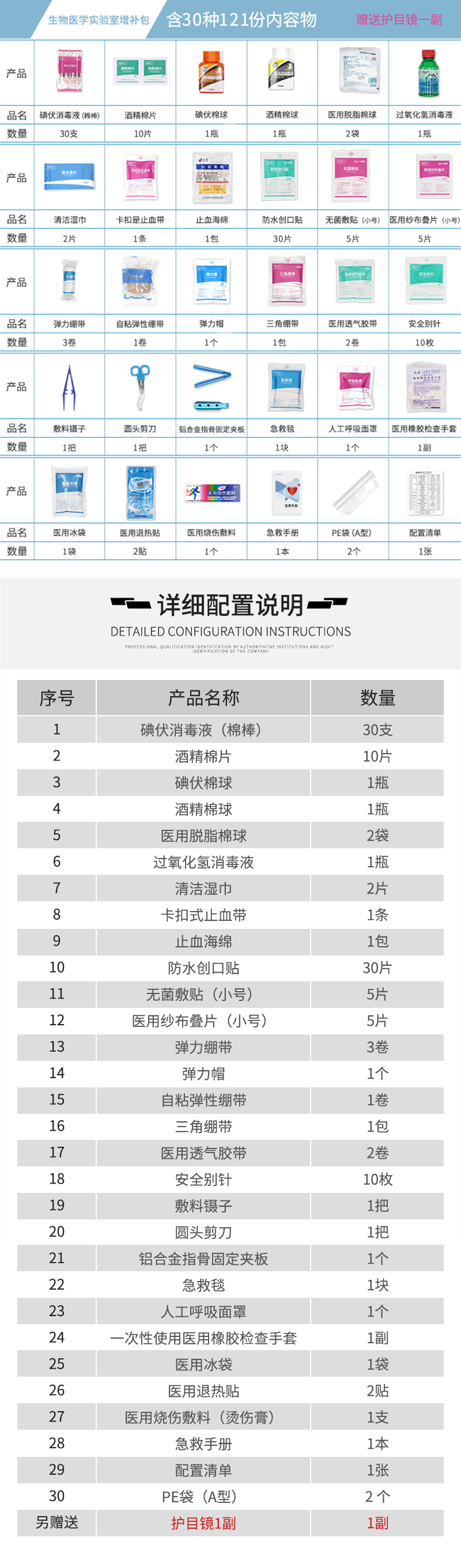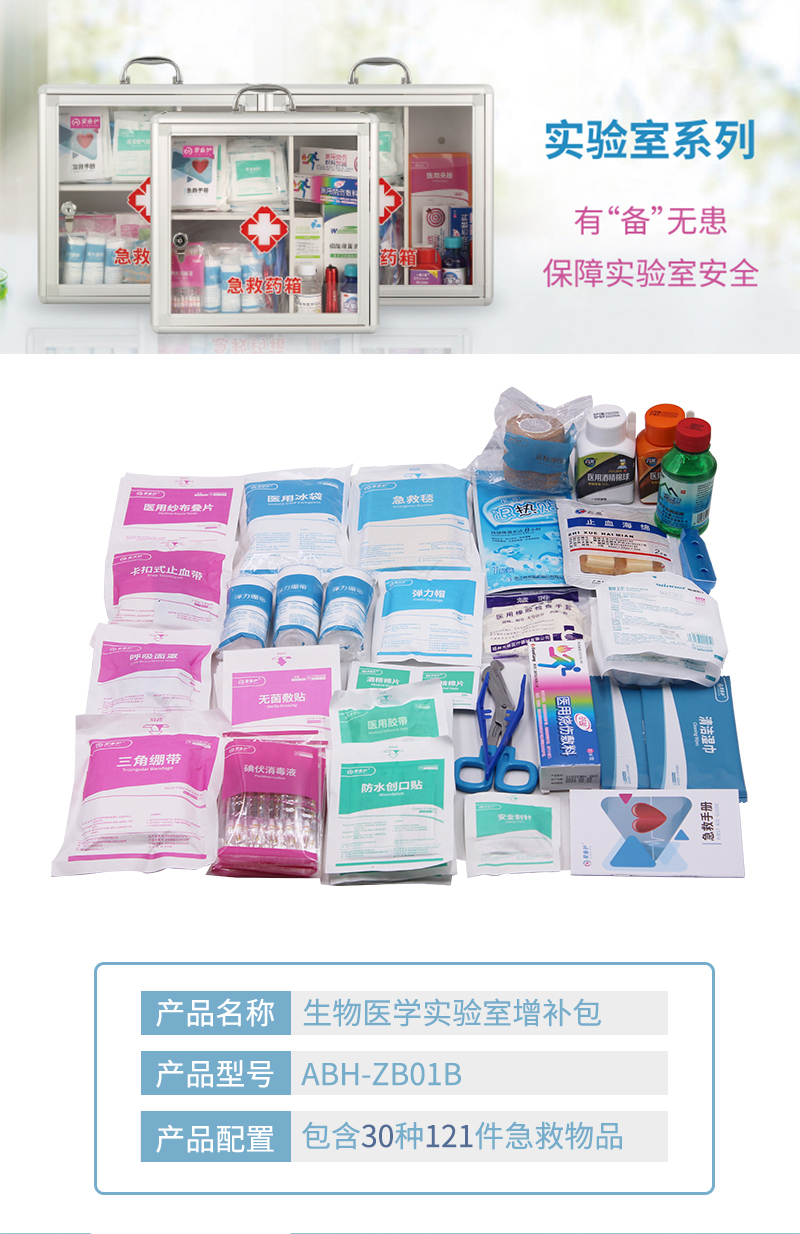 爱备护 生物医学实验室急救药箱增补包 配置齐全 ABH-ZB01B 含31种122件急救用品 透明色