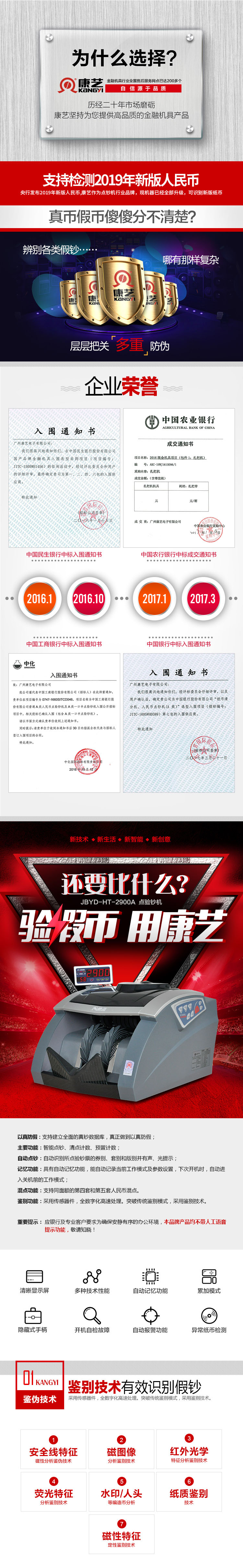 支持2019新版人民币 康艺JBYD-HT-2900A(B) 点钞机 验钞机 钢色
