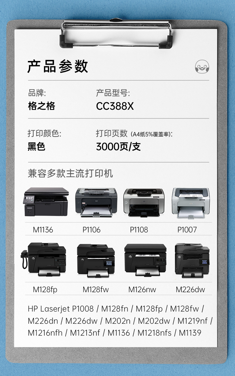 格之格388a硒鼓 88a大容量3支装适用惠普m1136硒鼓 cc388a p1108 m126a m128fn p1007打印机p1106墨盒 黑色