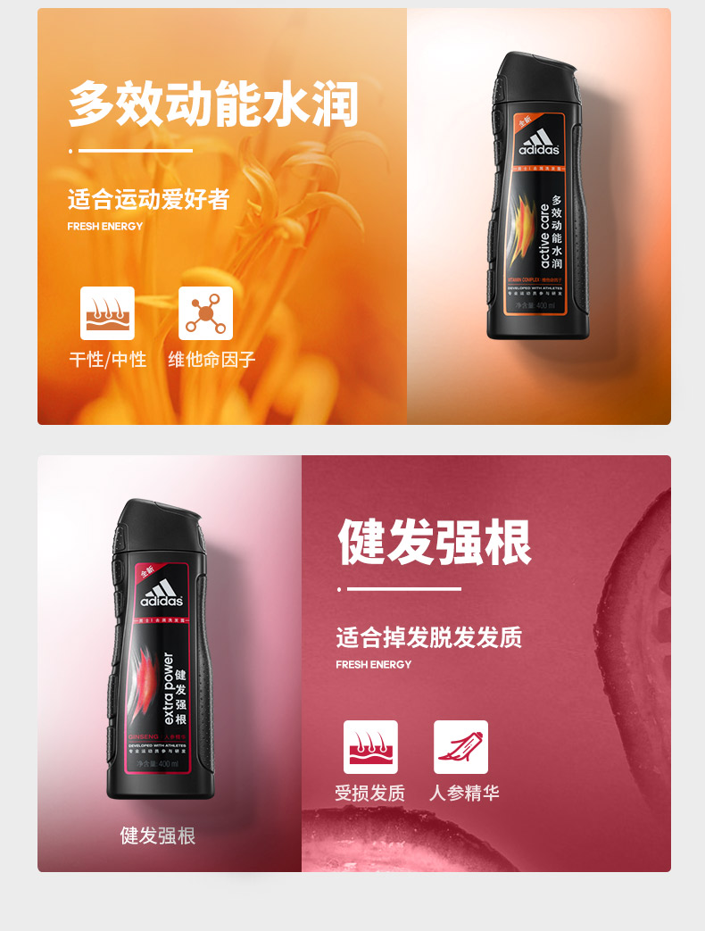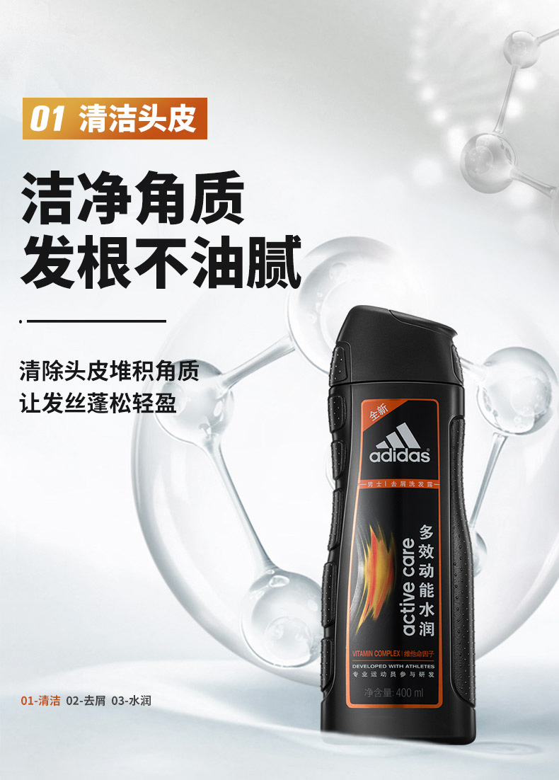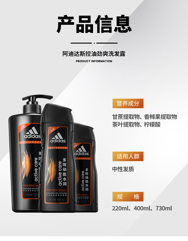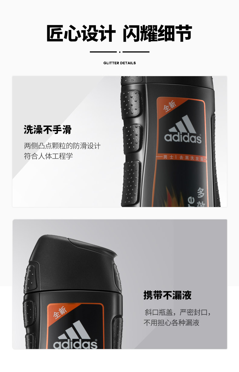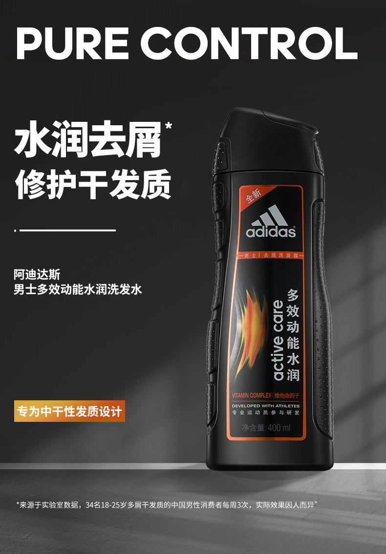 阿迪达斯男士多效动能水润去屑洗发露730ml 曜石黑