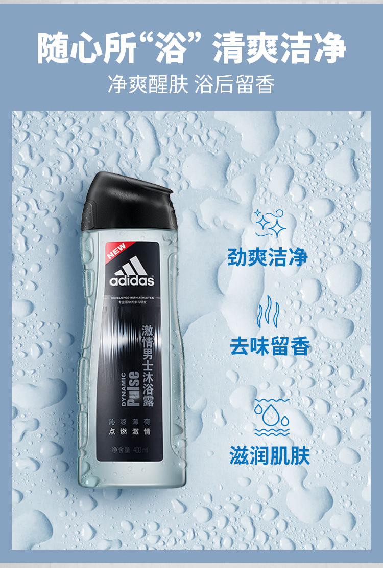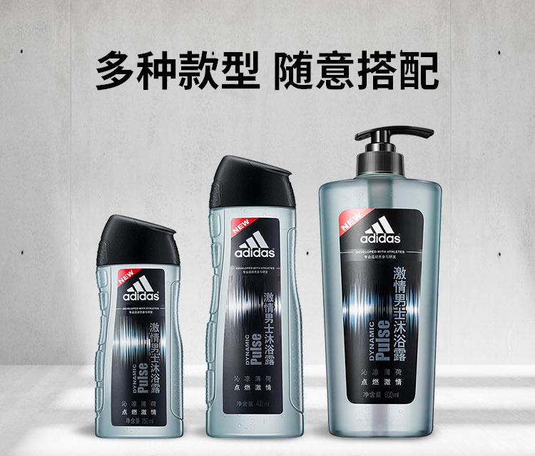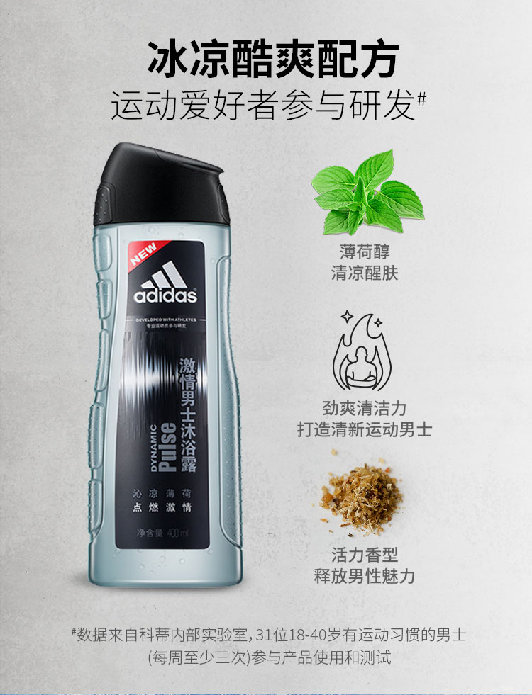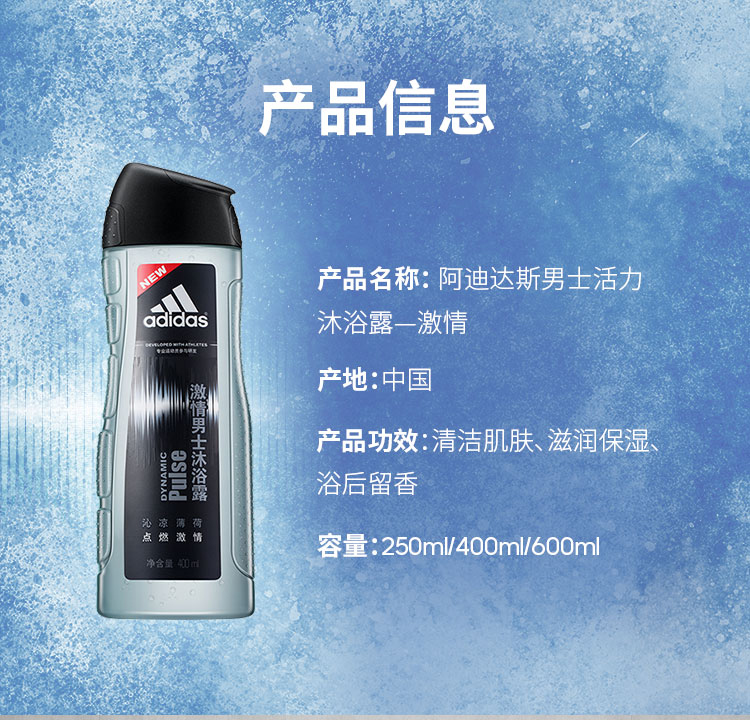 阿迪达斯男士活力沐浴露—激情250ml/瓶 灰色