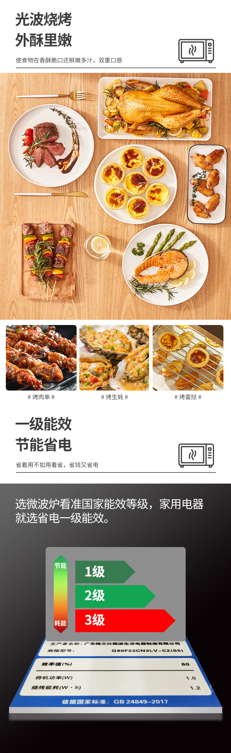 格兰仕变频微波炉 900W速热 微波炉烤箱一体机 G90F23CN3LV-C2(S5)/台 黑色