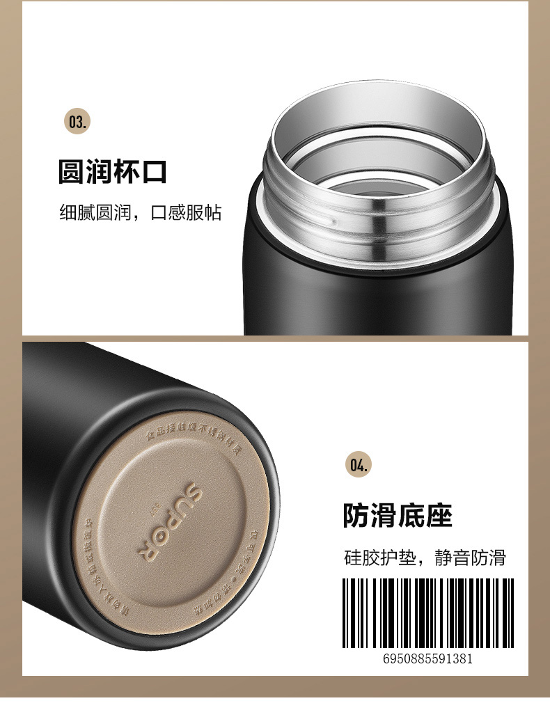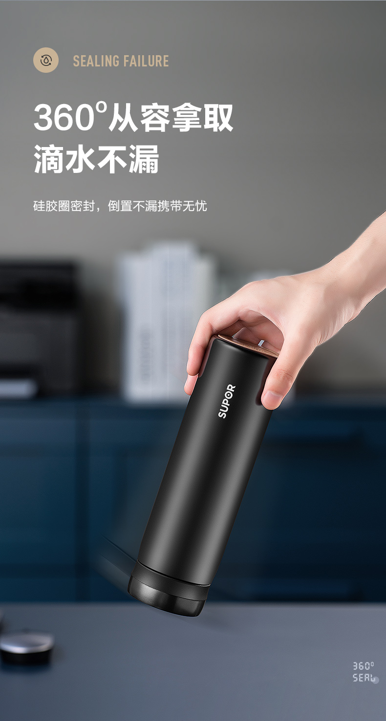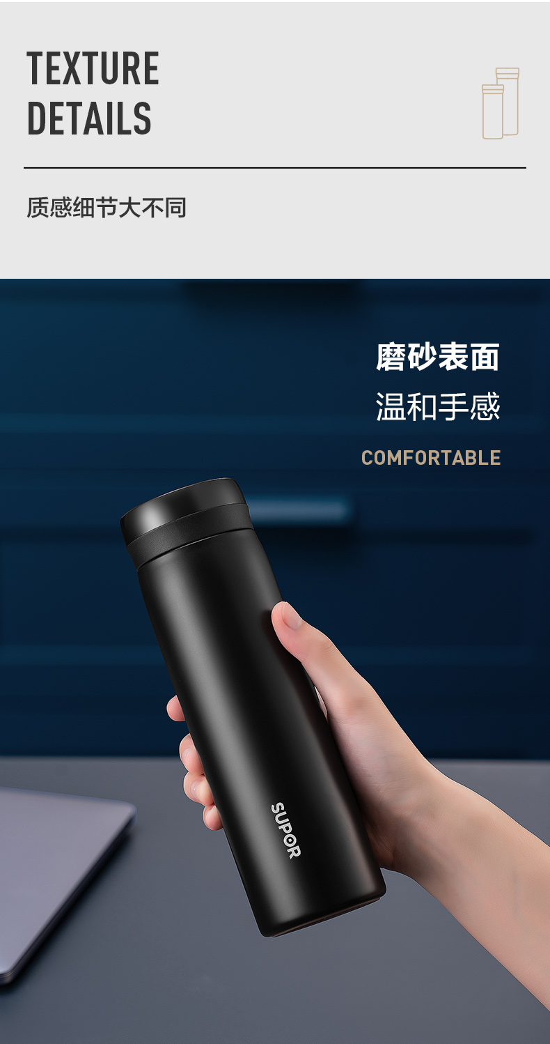 苏泊尔(SUPOR)304不锈钢 致系列保温杯500ML 茶水分离KC50GA10(个) 儒雅黑