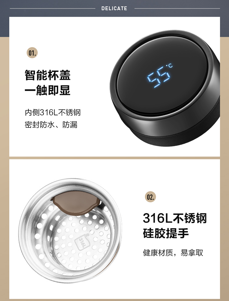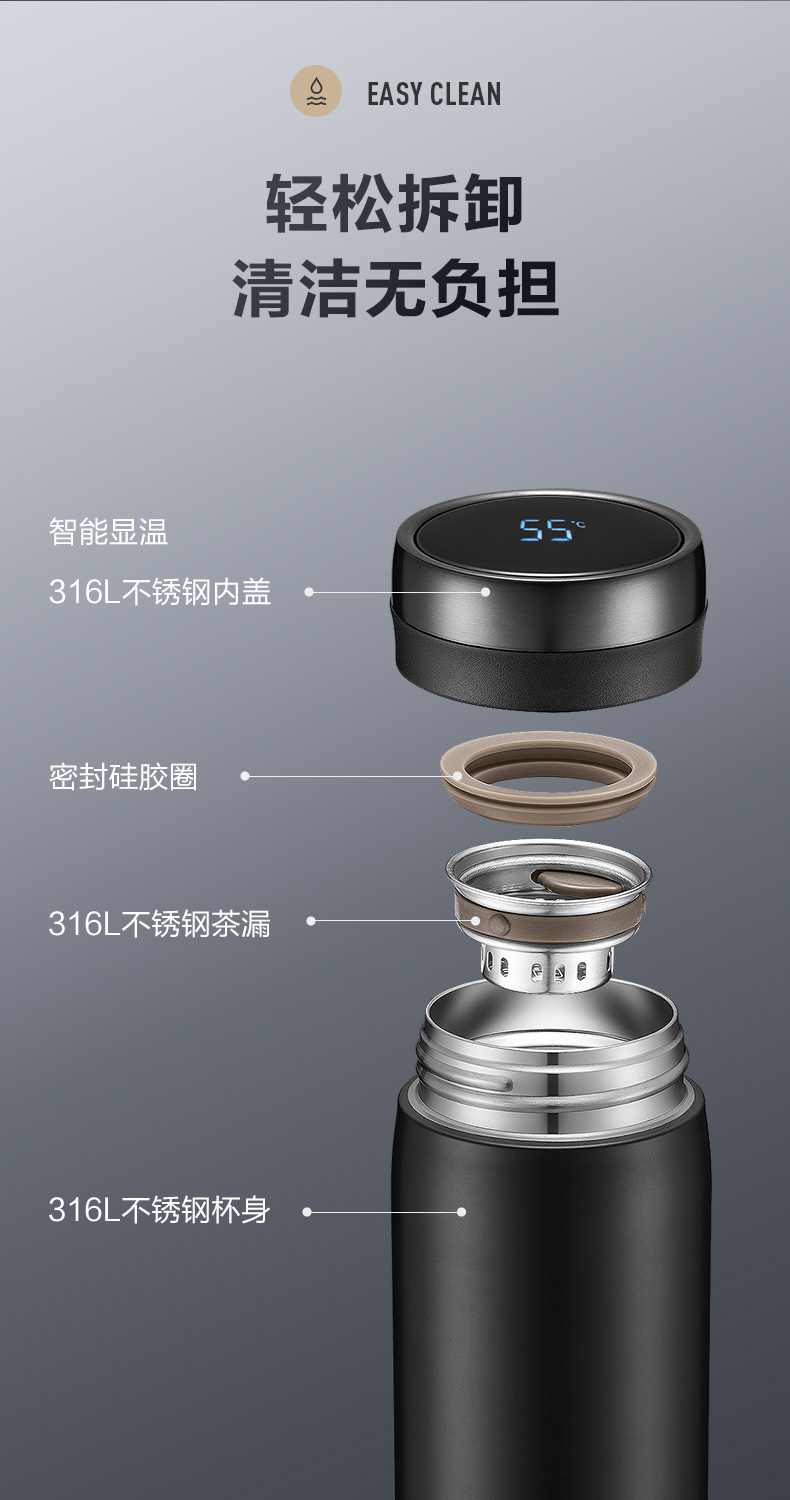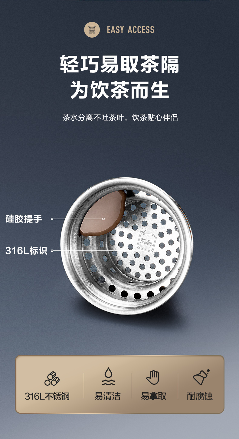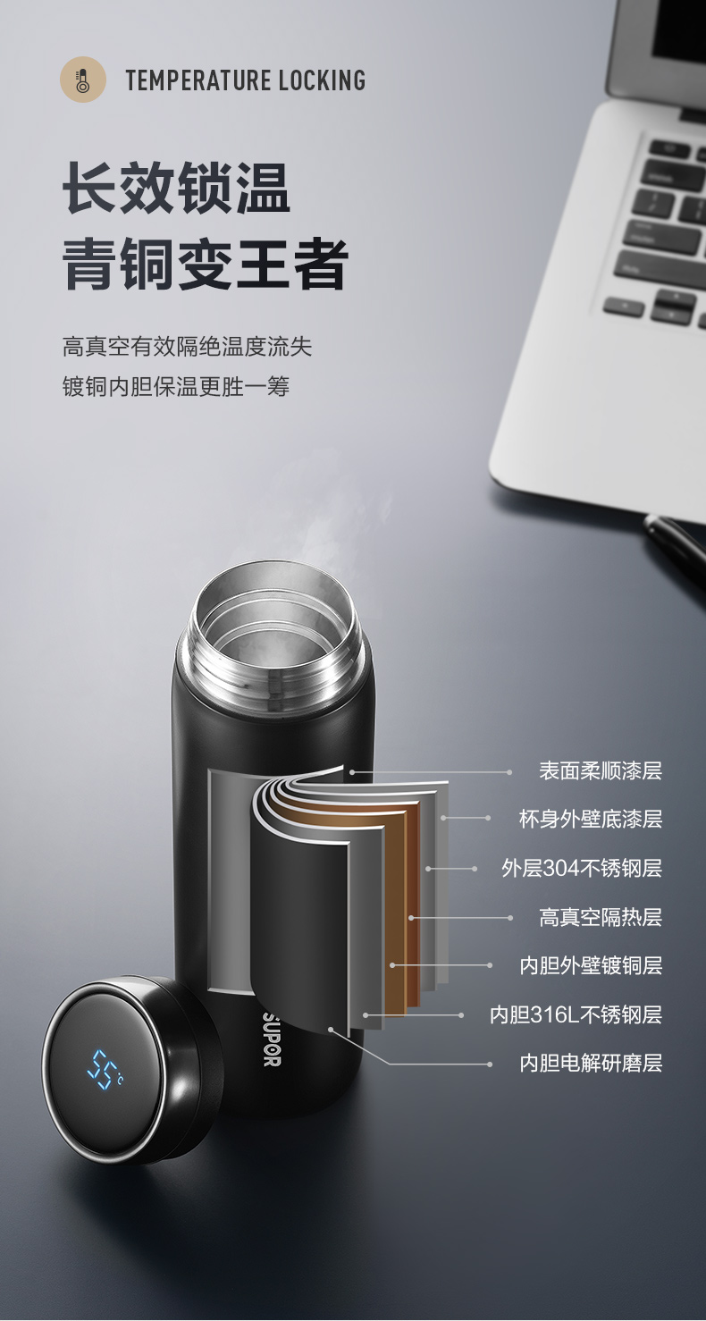 苏泊尔(SUPOR)304不锈钢 致系列保温杯500ML 茶水分离KC50GA10(个) 儒雅黑
